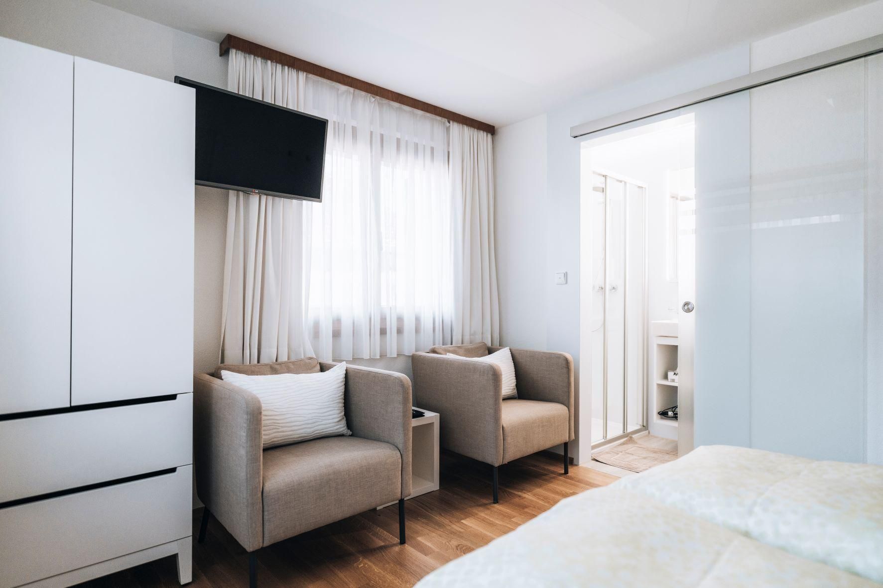 Doppelzimmer mit Komfort in Mellau – ca. 16,2 m² mit Dusche/WC Ein stilvoll eingerichtetes Doppelzimmer für Paare oder Alleinreisende, die Wert auf Komfort und Funktionalität legen – im typischen, reduzierten Stil des Bregenzerwalds.