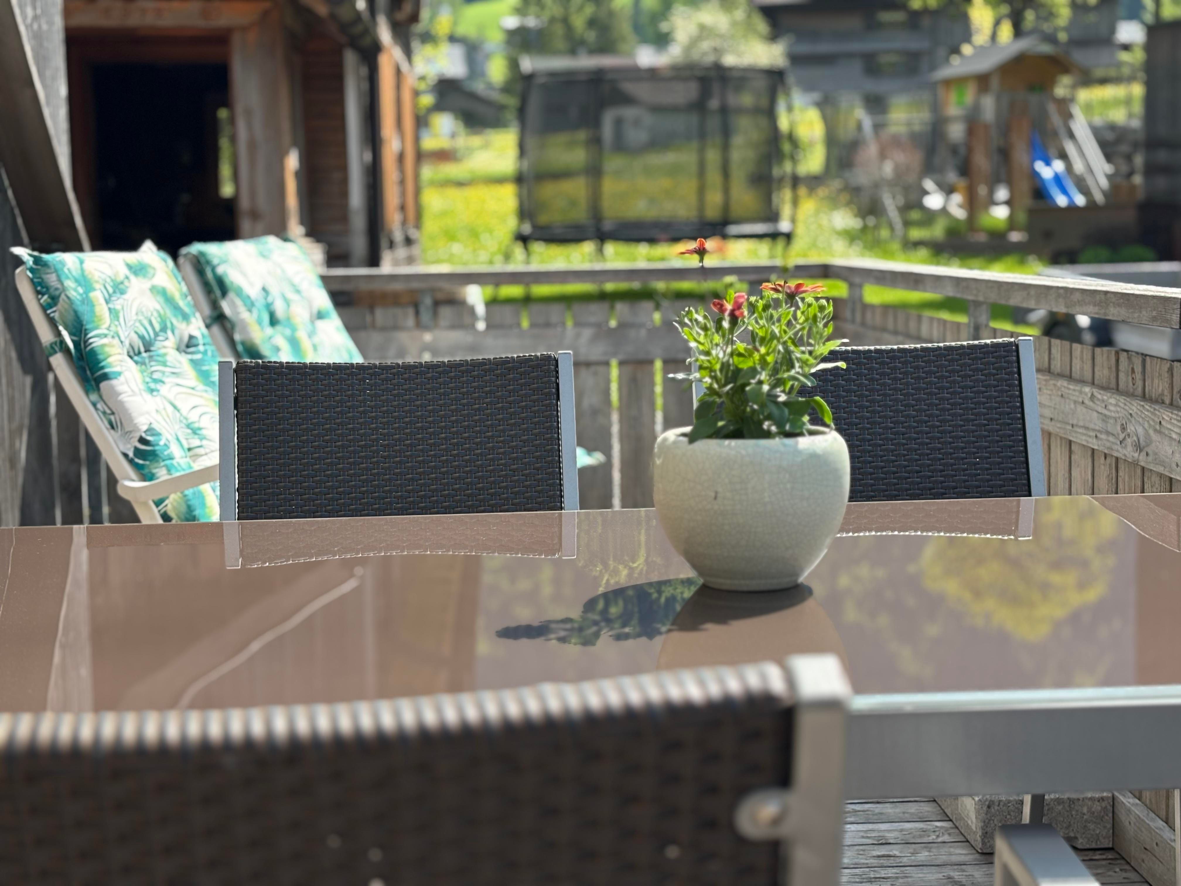 • Terrasse: Genießen Sie den beeindruckenden Blick auf die umliegenden Berge – der ideale Ort für Ihr Frühstück oder einen Sundowner.