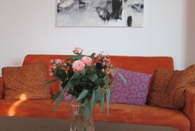Der offene Eingangs- und Essbereich sorgt schon beim Eintritt in die Wohnung für eine gemütliche Atmosphäre. Holzstühle,bequeme Ecksitzbank und ein Schiefertisch im Bündnerstil laden zum Verweilen ein. An den Essbereich grenzt eine kleine, voll ausgestattete Küche mit Blick auf den Flimserstein. Sie wurde vor kurzem neu und individuell gestaltet. Im grosszügigen und hellen Wohnzimmer mit bequemem Sofabett ( 140 cm breit) und Schreibtisch können Sie sich wohlfühlen. Der geräumige Balkon mit Esstisch ist nach Süden ausgerichtet und bietet einen schönen Ausblick auf die Signina-Bergkette. Bei schönem Wetter werden Sie die Abendstimmung mit den letzten sonnenbestrahlten Flecken auf den Gipfeln der Signina oder im Osten unten im Tal geniessen. Das Schlafzimmer verfügt über zwei Einzelbetten und - wenn nötig - über ein zusätzliches drittes und gleichwertiges Bett (stabiles Ausziehbett). Im grossen Schrank finden Ihre Kleider genügend Platz. Im gepflegten Badezimmer mit Badewanne finden Sie noch originale Wand- und Bodenfliesen aus den sixties vor, aber auch den nötigen Komfort incl. Haartrockner.