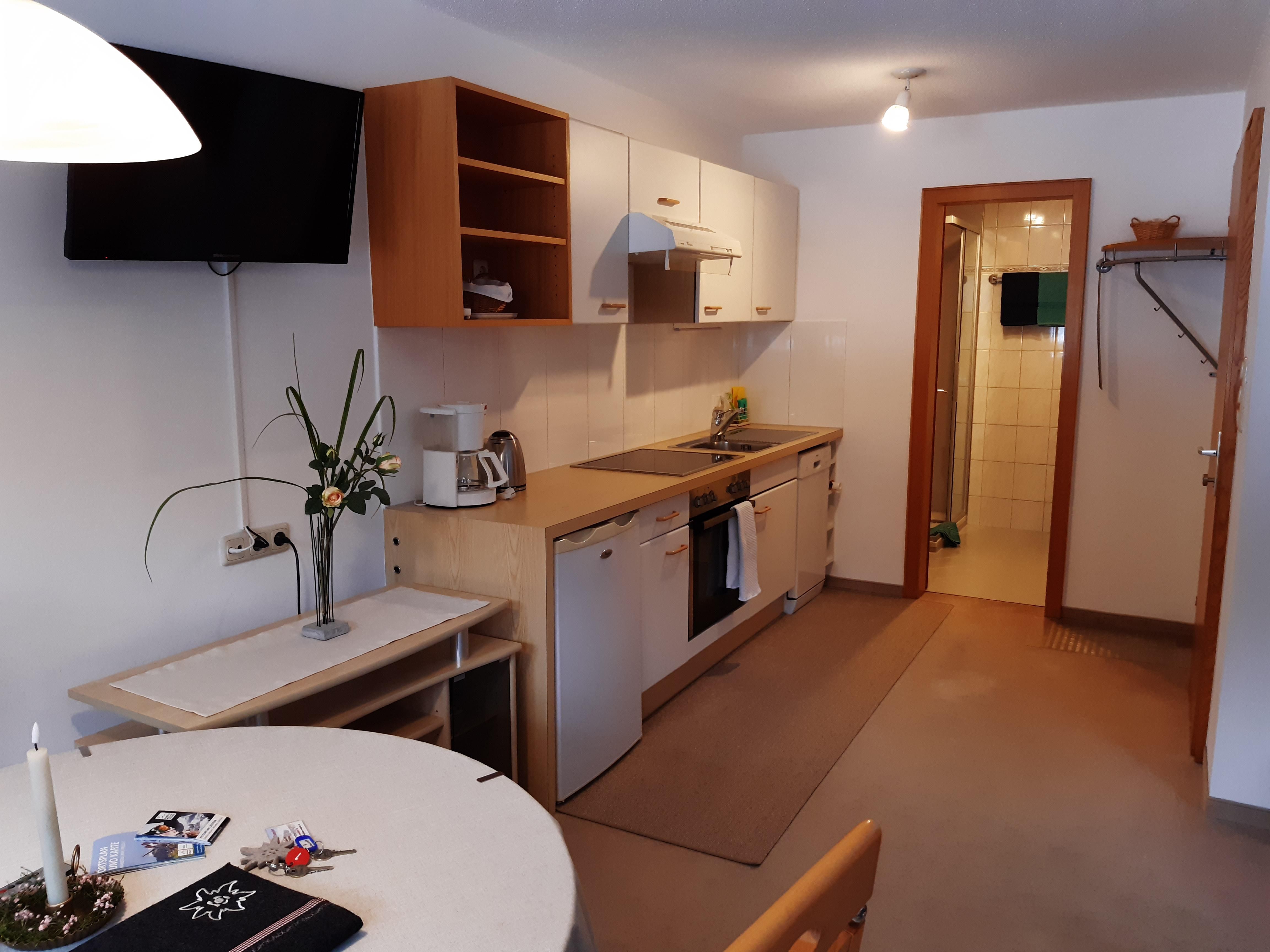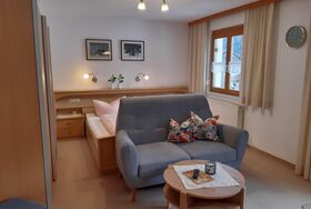 Für unsere Gäste haben wir 2 gemütliche, komplett eingerichtete Ferienwohnungen mit Balkon für 1-3 Personen. Bestens ausgestattet mit TV, Zimmersafe, DU/WC, Telefon, gratis W-LAN.Für warme und trockene Schuhe sorgt unsere Skischuhheizung im Skikeller - nicht nur im Winter sondern auch im Sommer zum Wandern.