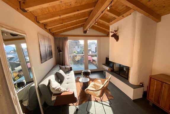 Sehr schöne renovierte 2.5 Zimmer Dachwohnung mit zusätzlichem Bett auf der Galerie (ohne Umbau für 4 pax) und Blick in die Berge. Die Wohnung befindet sich an der Via Pattadiras 10 in Laax Dorf und ist zentral gelegen in der Nähe von Busstation, Volg, Post, Restaurants etc… sowie des wunderschönen Laaxer-Sees. Es handelt sich um eine renovierte alpine Dachwohnung mit grosser Dachterrasse und toller Aussicht auf die Berge. Das Appartement verfügt über ein grosses Schlafzimmer sowie ein Doppelbett auf der Galerie, erreichbar per Leiter (mit Dachschräge und geringer Höhe dafür mit Fenster zum Anblick der Sterne;-)). Somit muss die 2.5 Zimmer-Wohnung bei 4er Belegung zum Schlafen nicht umgebaut werden. Kleinere Kinder haben alternativ die Möglichkeit zur Benutzung des Schlafsofas im Wohnzimmer. Zusätzlich steht ein Baby-Bett zur Verfügung. Ein reservierter Autounterstand steht Ihnen zur Verfügung Nr. B424. Zur Wohnung gehört ein abschliessbarer Fahrradkeller, ein Skiraum sowie eine Waschküche mit Waschmaschine und Tumbler. Haustiere sind nicht erlaubt. Nichtraucherwohnung (Möglichkeit zum Rauchen auf der grossen Terrasse)