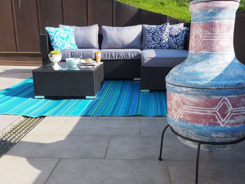 Grosse Dachterrasse mit wunderbarem Blick auf die Berge. Ausgestattet mit Lounge, Outdoor-Teppiche, Liegestuhl, Aztekenofen (nur im Sommer) und kleiner Essecke.