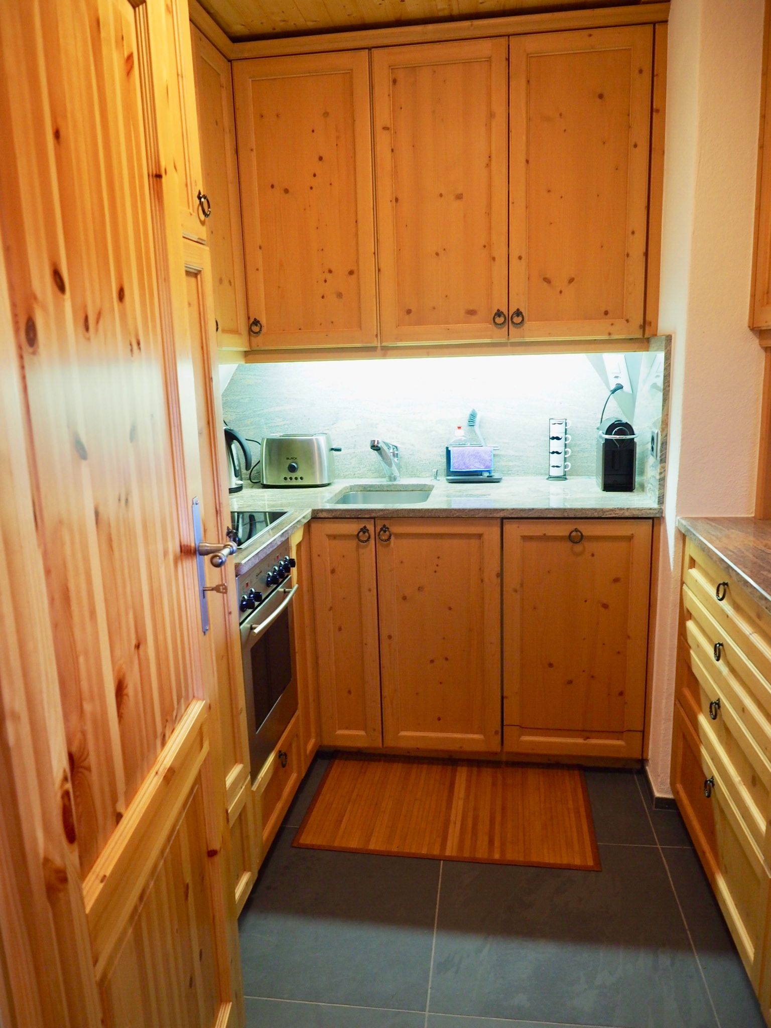 Die Küche ist komplett ausgestattet und verfügt über einen Glaskeramik-Kochherd, Backofen, grosser Kühlschrank mit Tiefkühlfach, Geschirrspülmaschine, Nespresso-Kaffeemaschine, Toaster, Wasserkocher, Raclette-Ofen, Käsefondue-Set und Fleischfondue-Set.