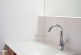 Bad mit Dusche/Badewanne und WC. Schuhtrockner.