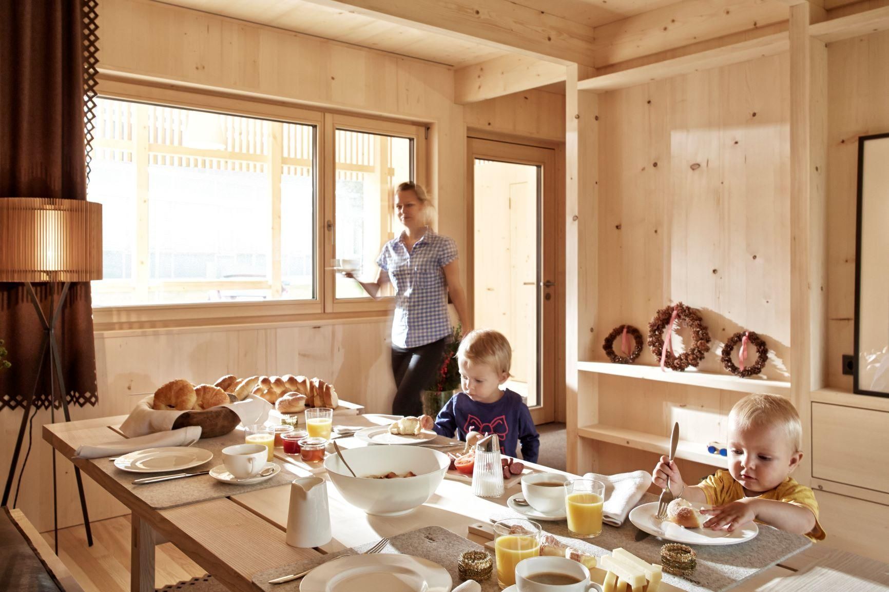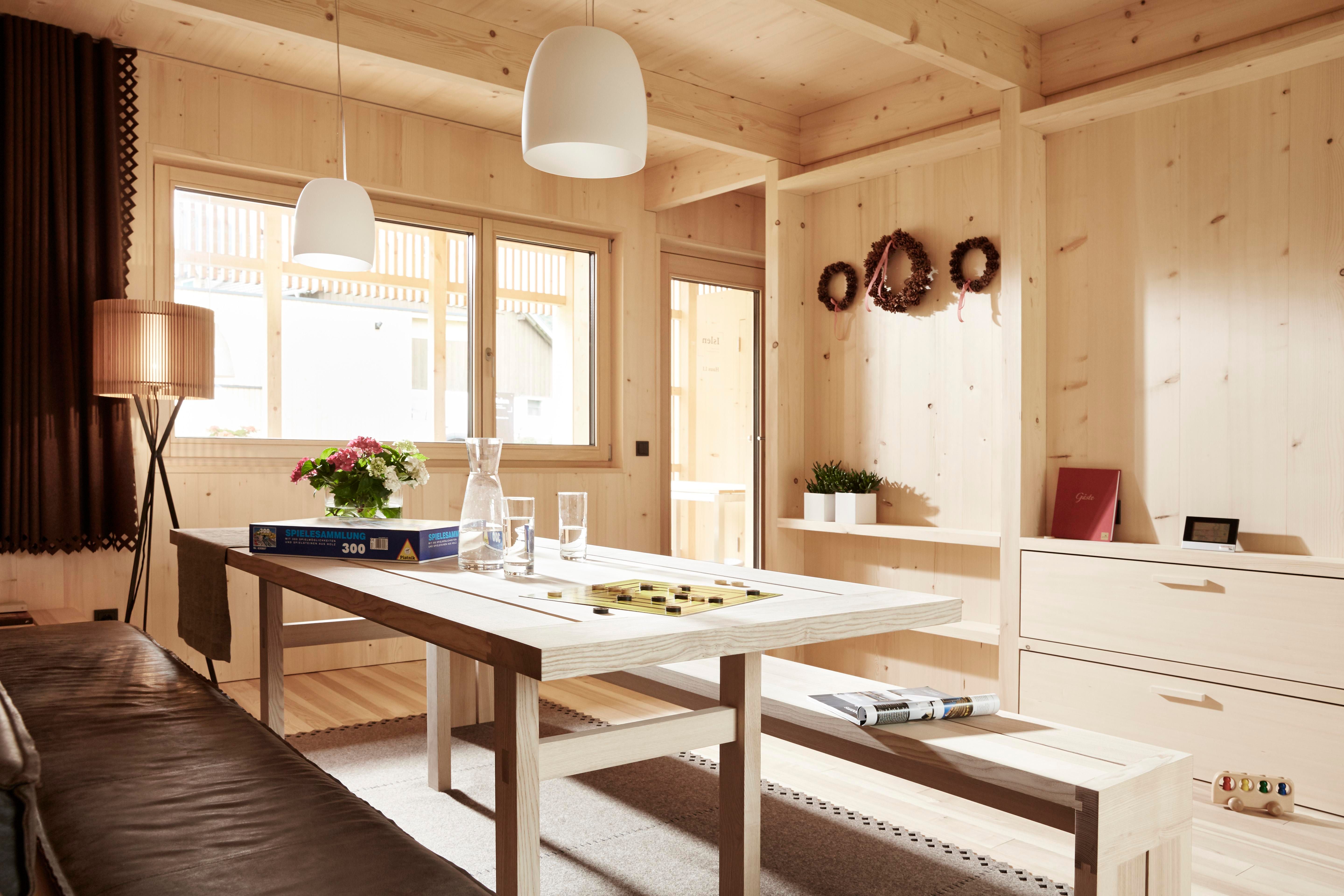 Die Idee für diese „Zeit-Insel“ hatten mein Vater Michael Kaufmann und mein Bruder Matthias. Sie führen gemeinsam die Zimmerei und Tischlerei Kaufmann in Reuthe und wollten ein ökologisches Haus bauen, in dem die Familie auch selber gerne wohnen würde. Auf Nachhaltigkeit und Ökologie der Materialien wurde deshalb höchsten Wert gelegt! Für die Planung holten sie sich Michaels Architektenbruder Johannes Kaufmann ins Boot.
