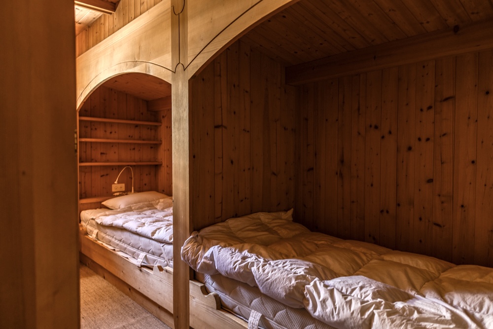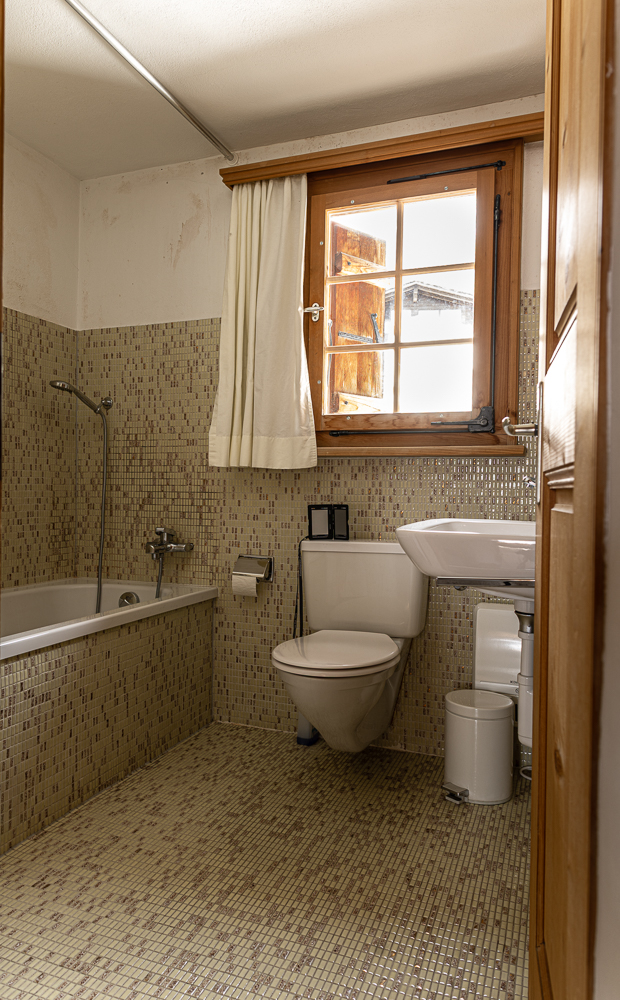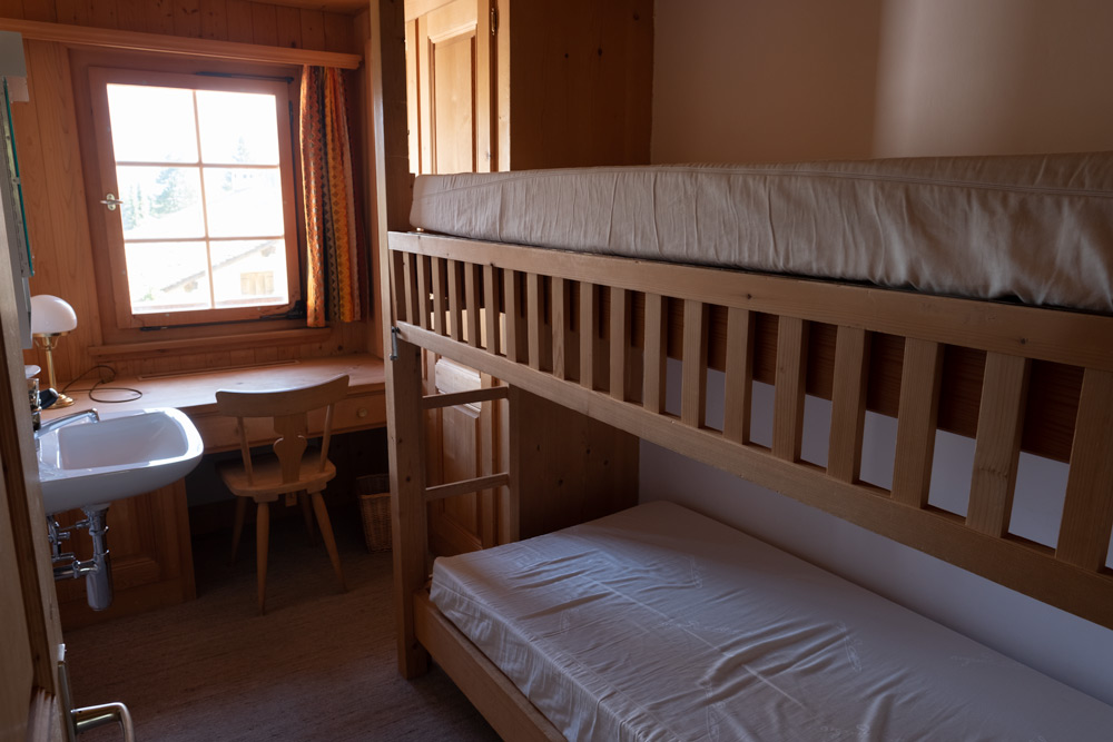 Im Erdgeschoss von Haus 3 ist das Wohnzimmer mit Essecke und Cheminée, und die Küche. Im 1. Stock, in dem auch das Bad und ein separates WC ist, sind drei Zimmer: ein Schlafzimmer mit Doppelbett und Balkon, ein Schlafzimmer mit getrennten Betten und ein drittes Schlafzimmer mit zwei Etagenbetten. Im Souterrain ist ein Zimmer mit einem Grand-Lit Bett (Breite 1.50m), eine Dusche mit WC und der Waschraum mit Waschmaschine.