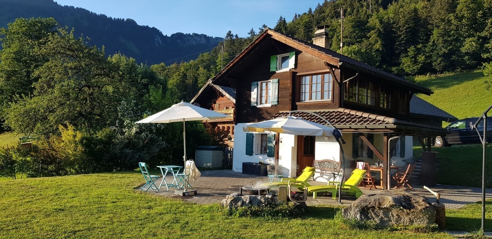 200-jähriges Holz-Chalet, liebevoll restauriert und kuschelig eingerichtet, mit 11.000 m² Wiesland, großer Sonnenterrasse, gedeckter Veranda und Blick auf die Alpenkette sowie den Genfersee. 800 m² gepflegter Rasenfläche. Geeignet für 4 Personen und Hund. Ideal für Wanderer (Wanderwege in 100 m) und Mountainbiker. Sie wohnen ganz allein privat.