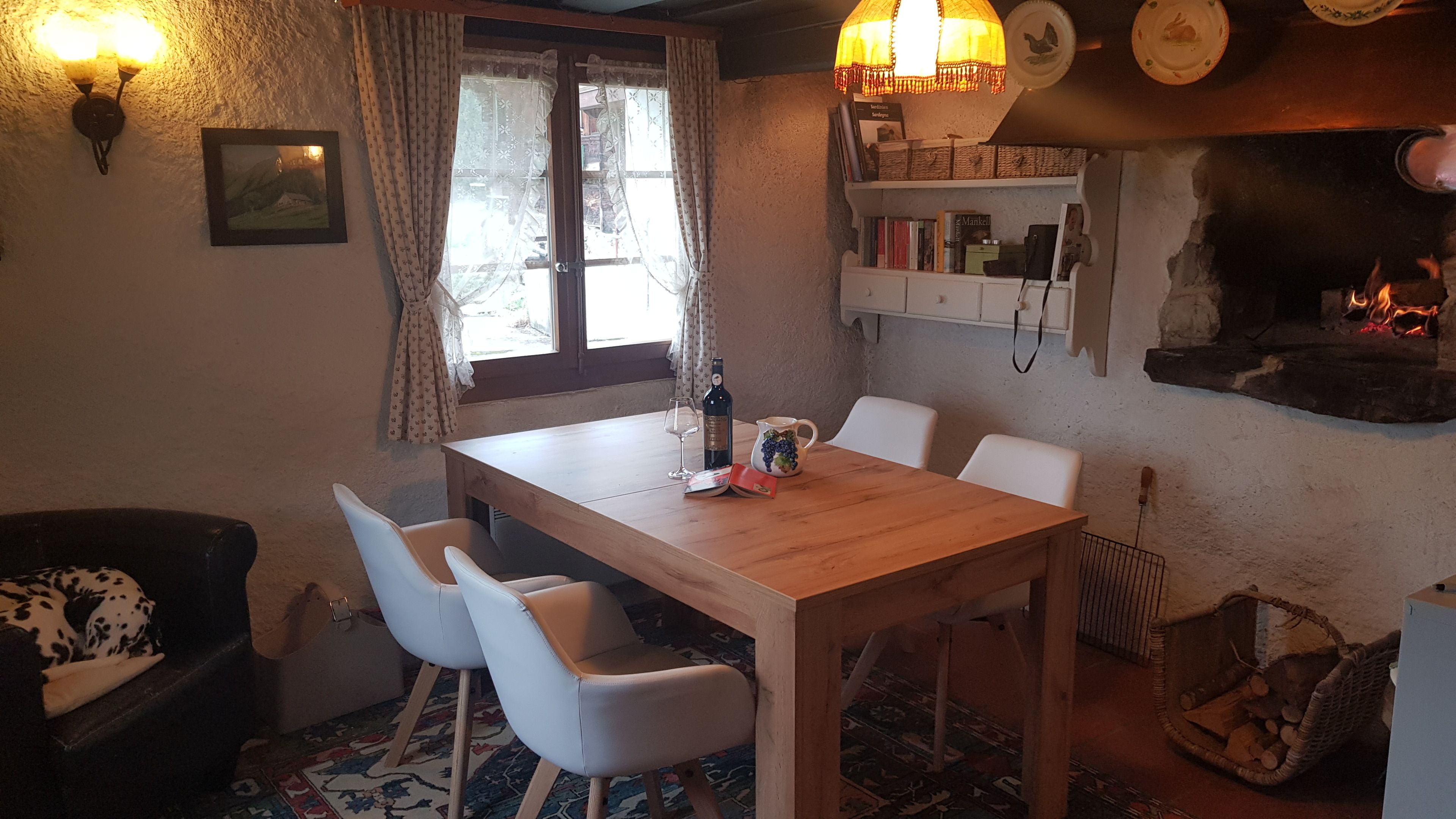 Beschreibung: Eingangsbereich, Wohn-/Esszimmer mit 200-jährigem Brot-/Pizzaofen, Schwedenofen zum Heizen mit Holz, Küche vollständig ausgestattet (Backofen, Ceranplatten, Spülmaschine), Waschmaschine. Wendeltreppe ins 1. Stock. Zwei Schlafzimmer: eines mit Doppelbett (160×200 cm, nordisch, 2 Duvet), das andere mit zwei Einzelbetten (2×90×200 cm). Toilette mit Dusche. Wohnzimmer mit Panoramablick. Home-Office-Bereich mit WLAN, SAT-TV. Große Außen-Terrasse mit ausreichend Liegen, Esstisch und Gartenstühlen – perfekt zum Speisen im Freien. Wirksame Elektroheizung für kühle Tage und Winter, sowie Parkplatz mit Wendeschleife.