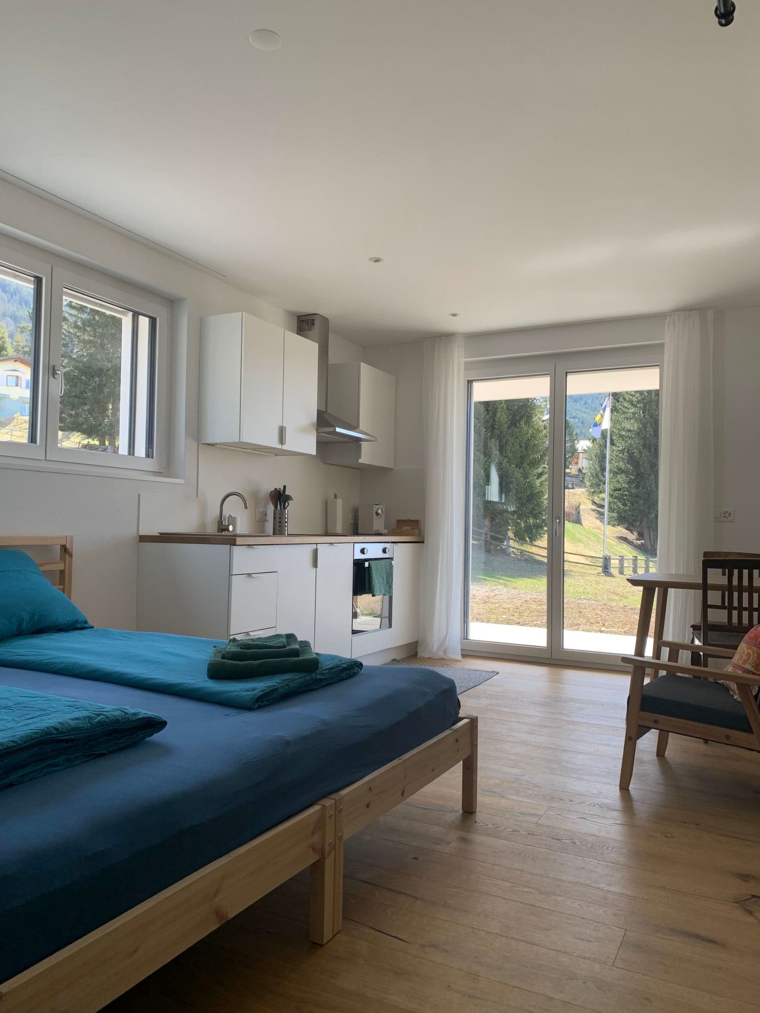 23 m2. Weitere Angaben des Anbieters: Das kleine Studio liegt in erhöhter, sonniger Lage im Herzen von Lenzerheide, direkt im Dorfzentrum. Es befindet sich unmittelbar an der Dorfpiste und bietet einen Parkplatz. Die Skipiste sowie Wander- und Bikewege beginnen direkt vor der Tür. Geniesse die atemberaubende Aussicht und den herrlichen Blick auf die umliegenden Berge. Die Unterkunft befindet sich im Erdgeschoss und ist rollstuhlgerecht. Das Auto kannst du auf dem Aussenparkplatz direkt vor dem Studio oder in der hauseigenen Tiefgarage abstellen. Ein Aufzug ist vorhanden. Gartenmöbel, inklusive Liegestuhl und Grill, stehen zur Verfügung. Das 1,80 Meter breite Doppelbett bietet Platz für zwei Personen, kann aber auch einfach als zwei Einzelbetten genutzt werden. Auf Anfrage ist ein Babybett erhältlich. Der Fernseher ist schwenkbar und die Küche ist vollständig ausgestattet. Das Badezimmer verfügt über ein WC und eine Dusche. Zudem stehen ein Bikeraum sowie ein Skiraum zur Verfügung. Die Nutzung der Waschmaschine und des Trockners ist inklusive, ebenso wie TV, WLAN und Strom. Ein kleiner Kellerabteil kann auf Anfrage genutzt werden.