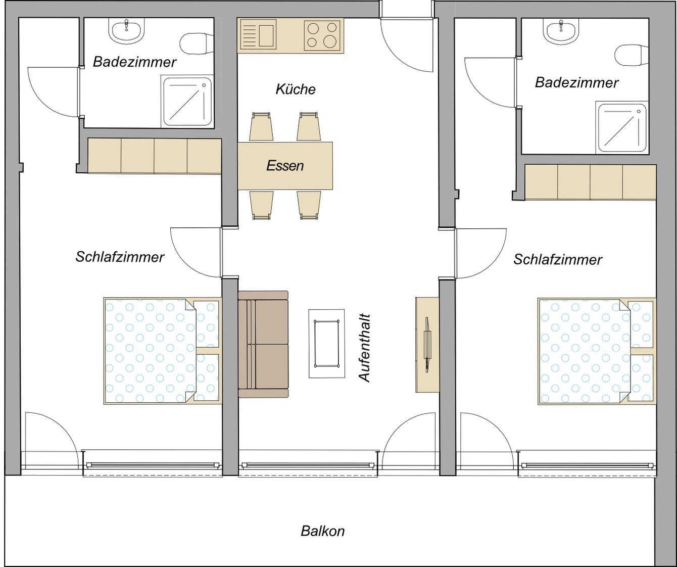 Dieses exklusive Apartment ist in zwei gemütliche Schlafzimmer mit jeweils eigenem Bad aufgeteilt, sodass Sie und Ihre Mitreisenden viel Privatsphäre und Komfort genießen können. Die Badezimmer sind neu und modern gestaltet und bieten alles, was Sie für Ihren Aufenthalt benötigen. Der große Wohn- und Essbereich lädt zum Verweilen ein. Hier finden Sie eine neue, voll ausgestattete Küche, die das Kochen zum Vergnügen macht, sowie einen gemütlichen Sitzbereich, in dem Sie entspannte Stunden verbringen können. Große Fenster lassen viel Tageslicht herein und bieten einen herrlichen Blick auf die umliegenden Allgäuer Berge. Der Balkon mit Südausrichtung ist der perfekte Ort für gemütliche Stunden im Freien. Genießen Sie hier den Blick auf die malerische Natur während Sie eine Tasse Kaffee am Morgen oder einem guten bayerischen Bier am Abend.