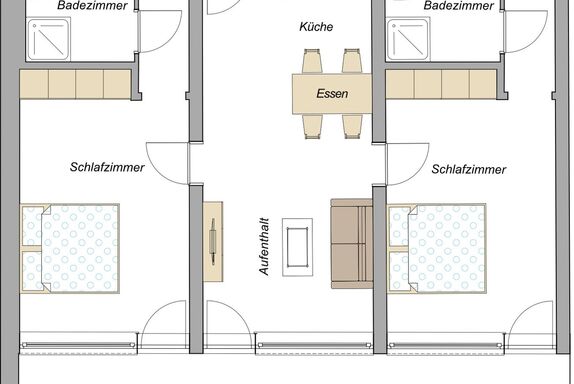 Dieses exklusive Apartment ist in zwei gemütliche Schlafzimmer mit jeweils eigenem Bad aufgeteilt, sodass Sie und Ihre Mitreisenden viel Privatsphäre und Komfort genießen können. Die Badezimmer sind neu und modern gestaltet und bieten alles, was Sie für Ihren Aufenthalt benötigen.  Der große Wohn- und Essbereich lädt zum Verweilen ein. Hier finden Sie eine neue, voll ausgestattete Küche, die das Kochen zum Vergnügen macht, sowie einen gemütlichen Sitzbereich, in dem Sie entspannte Stunden verbringen können. Große Fenster lassen viel Tageslicht herein und bieten einen herrlichen Blick auf die umliegenden Allgäuer Berge. Der Balkon mit Südausrichtung ist der perfekte Ort für gemütliche Stunden im Freien. Genießen Sie hier den Blick auf die malerische Natur während Sie eine Tasse Kaffee am Morgen oder einem guten bayerischen Bier am Abend.
