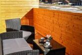 • Überdachter Balkon mit gemütlicher Sitzmöglichkeit und traumhaftem Blick auf die Berge