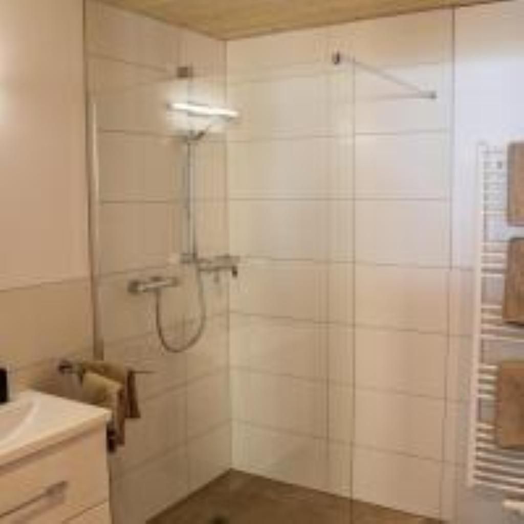 • Badezimmer mit Dusche, Handtuchtrockner und zusätzlichem separaten WC