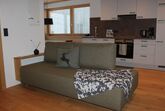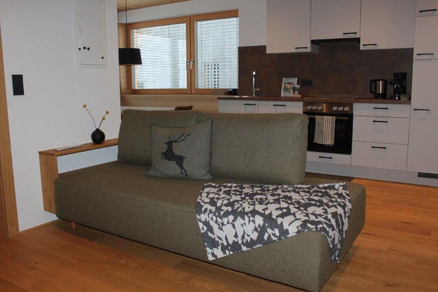 Im Wohnbereich befindet sich eine bequeme Couch, auch für einen weiteren bequemen Schlafplatz.