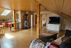 Genießen Sie Ihren Aufenthalt in dieser großzügigen, stilvoll eingerichteten 80 m² Ferienwohnung im Dachgeschoss– ideal für bis zu 2 Personen. Im separaten Schlafzimmer erwartet Sie ein komfortables Boxspring-Doppelbett für erholsame Nächte. Der offene, lichtdurchflutete Wohnbereich mit rund 60 m² vereint Wohnzimmer, Küche und Essbereich zu einem harmonischen Raum, in dem Sie entspannen, kochen und genießen können. Vom Balkon aus blicken Sie ins Grüne und lassen den Tag entspannt ausklingen. Das moderne Badezimmer mit Dusche rundet das Wohlfühlambiente perfekt ab.