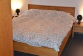 Das westseitige Elternschlafzimmer hat ein franz. Doppelbett (1.60 m breit) mit 2 Daunenduvets. 2 Nachttische, 3-teiliger Schrank. Radio mit Weckfunktion.