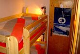 Das nordseitige Kinderzimmer mit Kajütenbett und 3-teiligem Schrank. Büchergestell mit Büchern und Gesellschaftsspielen für Jung und Alt.