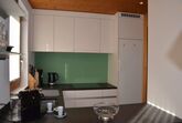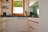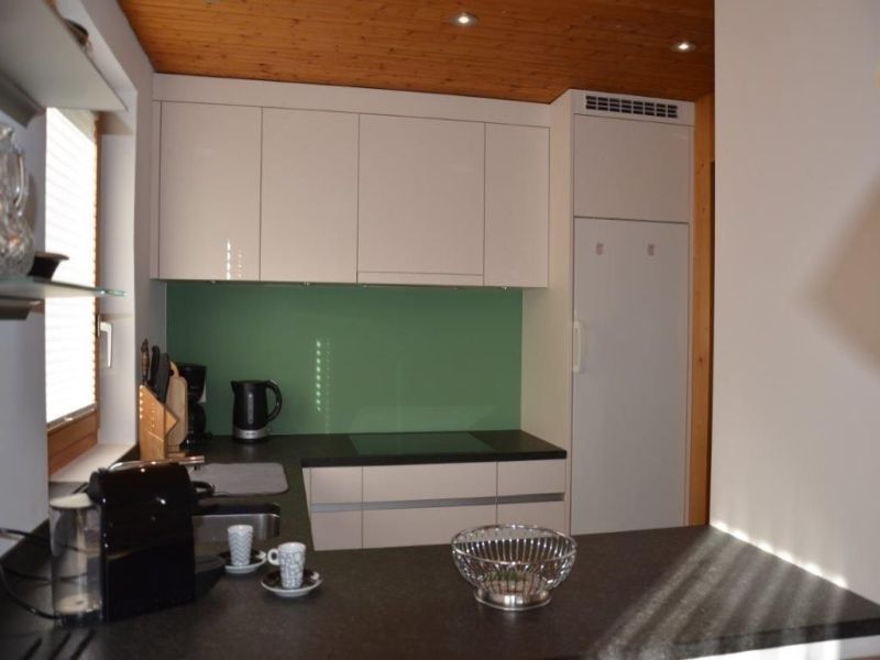 Die moderne Küche (mit Fenster zur Westseite) ist komplett ausgestattet: Kochherd (Induktion), Backofen auf Sichthöhe, grosser Kühlschrank mit Tiefkühlfach, Geschirrspülmaschine, Filterkaffeemaschine, Nespresso-Kaffeemaschine (Kapseln werden nicht gestellt), Raclette- und Fondueset, Toaster, Handmixer, Wasserkocher etc.
