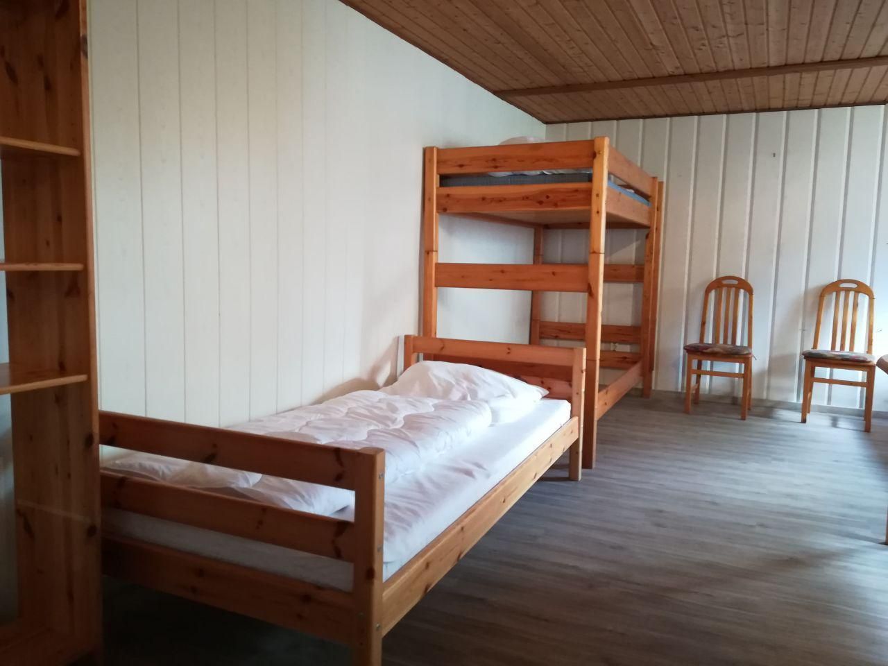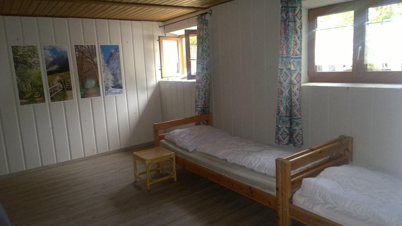 Schlafzimmer 3: Bei diesem Zimmer handelt es sich um ein Schlaflager im Erdgeschoss. Es ist sehr einfach gehalten und wurde nicht aufwendig renoviert. Letzte Renovierung: 2018. Das Schlaflager ist nur für Leute mit geringen Ansprüchen geeignet. Ab 5 Personen ist dieses Zimmer im Mietpreis inbegriffen. Bei weniger Personen kann es gerne auf Nachfrage zusätzlich gemietet werden. Es ist normalerweise für max. 3 Personen gedacht. Kann aber nach Absprache auch anders belegt werden. Bitte beachten Sie: das Zimmer kann im Winter nicht ausreichend beheizt werden. Im Sommer und in der Übergangszeit kann das Schlaflager seit Sommer 2020 ausreichend beheizt werden.