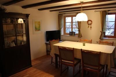 Die Wohnung befindet sich in einem paradiesisch schönen und grossen, älteren Bauernhof (ohne landwirtschaftlichem Betrieb) mit tollem Fernblick auf die Allgäuer Berge. Der Bauernhof ist umgeben von einem herrlichen Grundstück mit eigenem Wald. Lage: In erhabener und leicht erhöhter Ortsrandlage (südöstliche Ausrichtung) über dem historischen Ortskern eines ostallgäuerischen Dorfes, unweit von Kaufbeuren und Irsee, mit freiem Blick auf die von Wiesen und Hügeln geprägte Allgäuer Landschaft. Die Königsschlösser sind in ca. 45 min zu erreichen, Der herrliche Forggensee in ca. 30 min. Im Winter sind die nächsten Loipen direkt vom Haus aus zu erreichen. Weitere Loipen sind in Irsee und der näheren und weiteren Umgebung. Nächste Bademöglichkeiten (10 min.) sind im Naturfreibad Gfällmühle oder am Elbsee, beides mit Liegewiese und Restaurant.