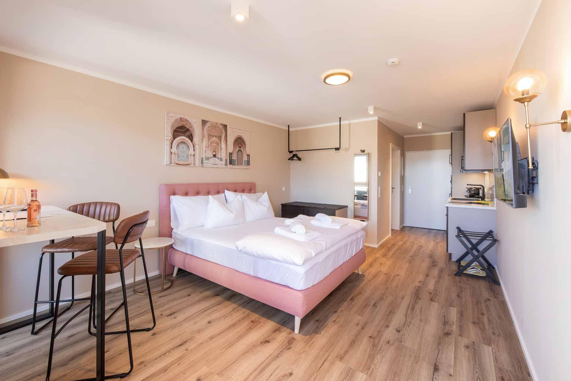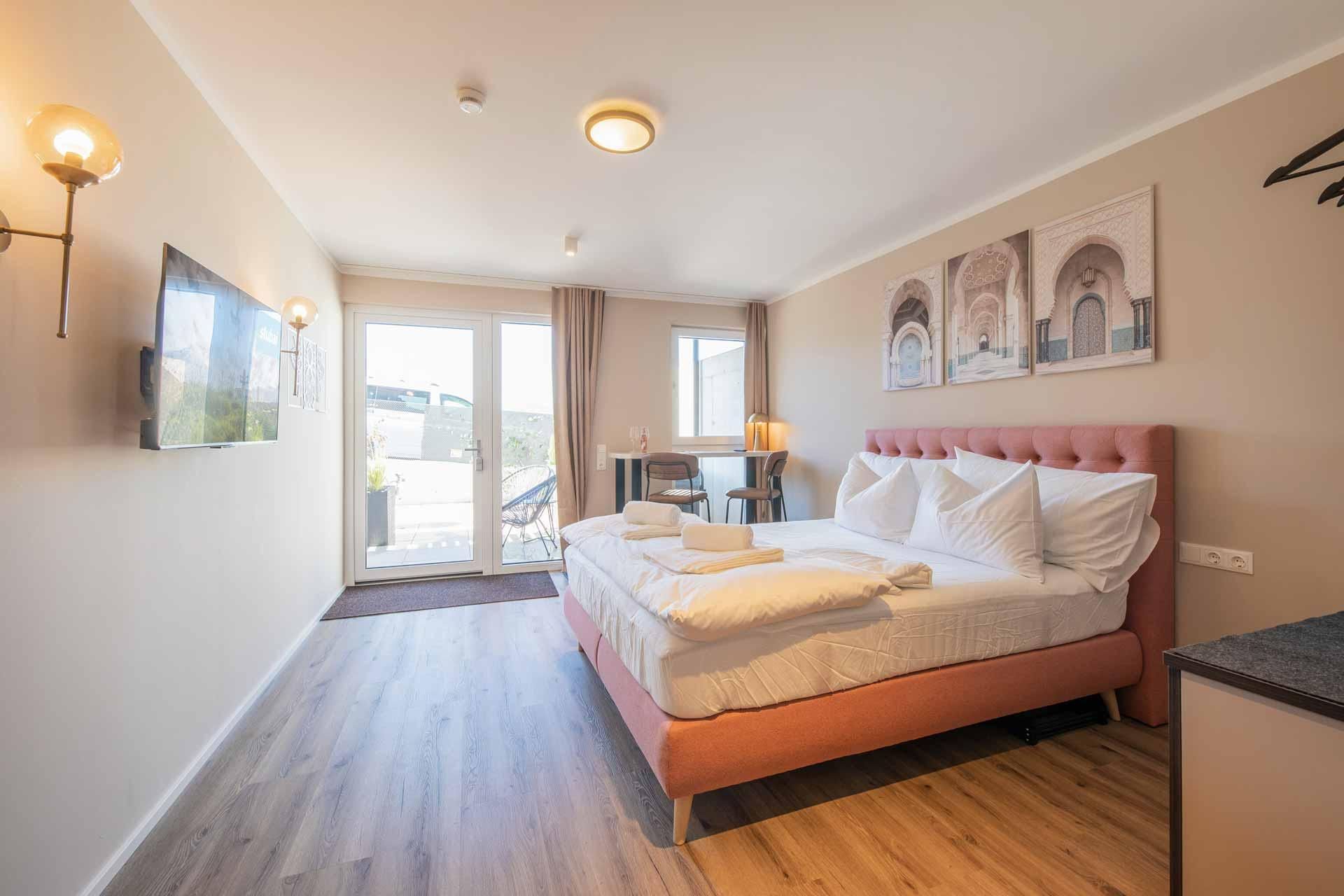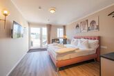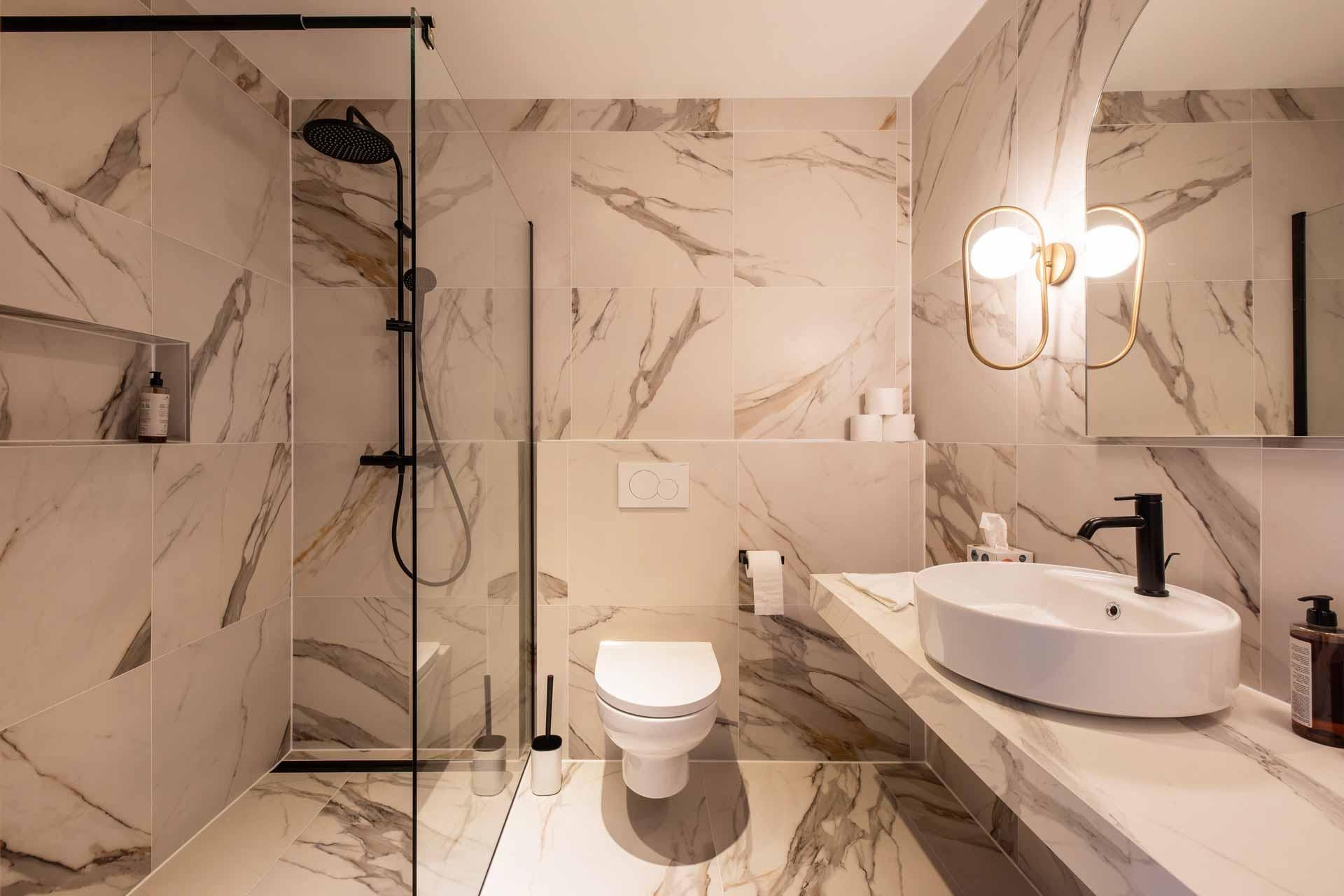 Die Oriental Shine Suite ist als stilvolles Themenzimmer gestaltet. Ihr harmonisches Designkonzept mit abgestimmten Farben und hochwertigen Materialien schafft eine besondere Wohnatmosphäre. Edle Marmorfliesen im Badezimmer unterstreichen den eleganten Charakter der Suite.