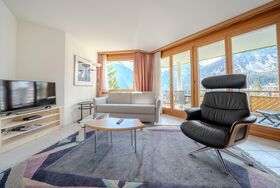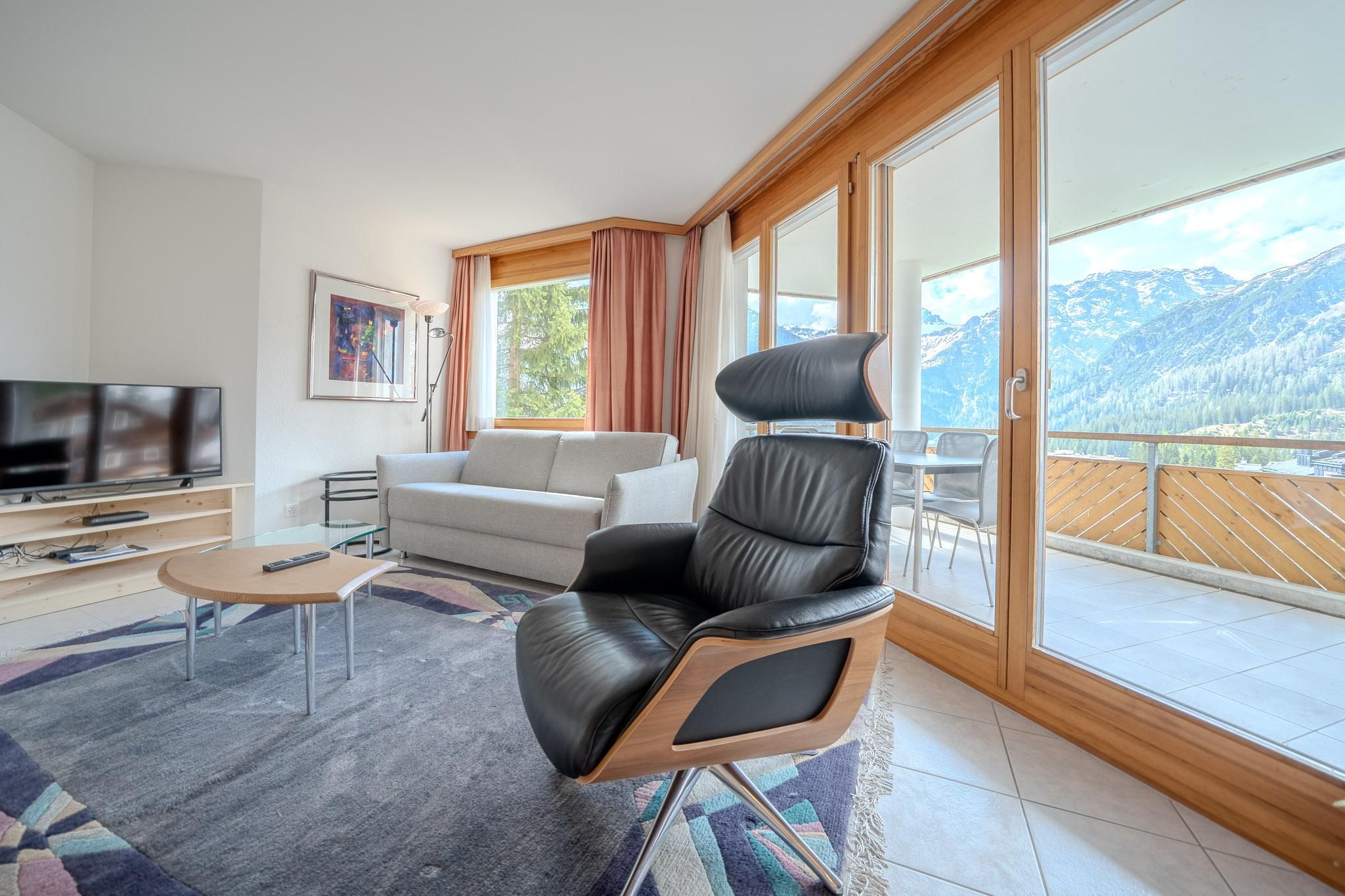 Hell, geräumig und mit wunderschöner Aussicht auf die Berge und das Dorf Arosa. Ausgestattet mit bequemen Sofas, TV, WLAN und Zugang zum Balkon.