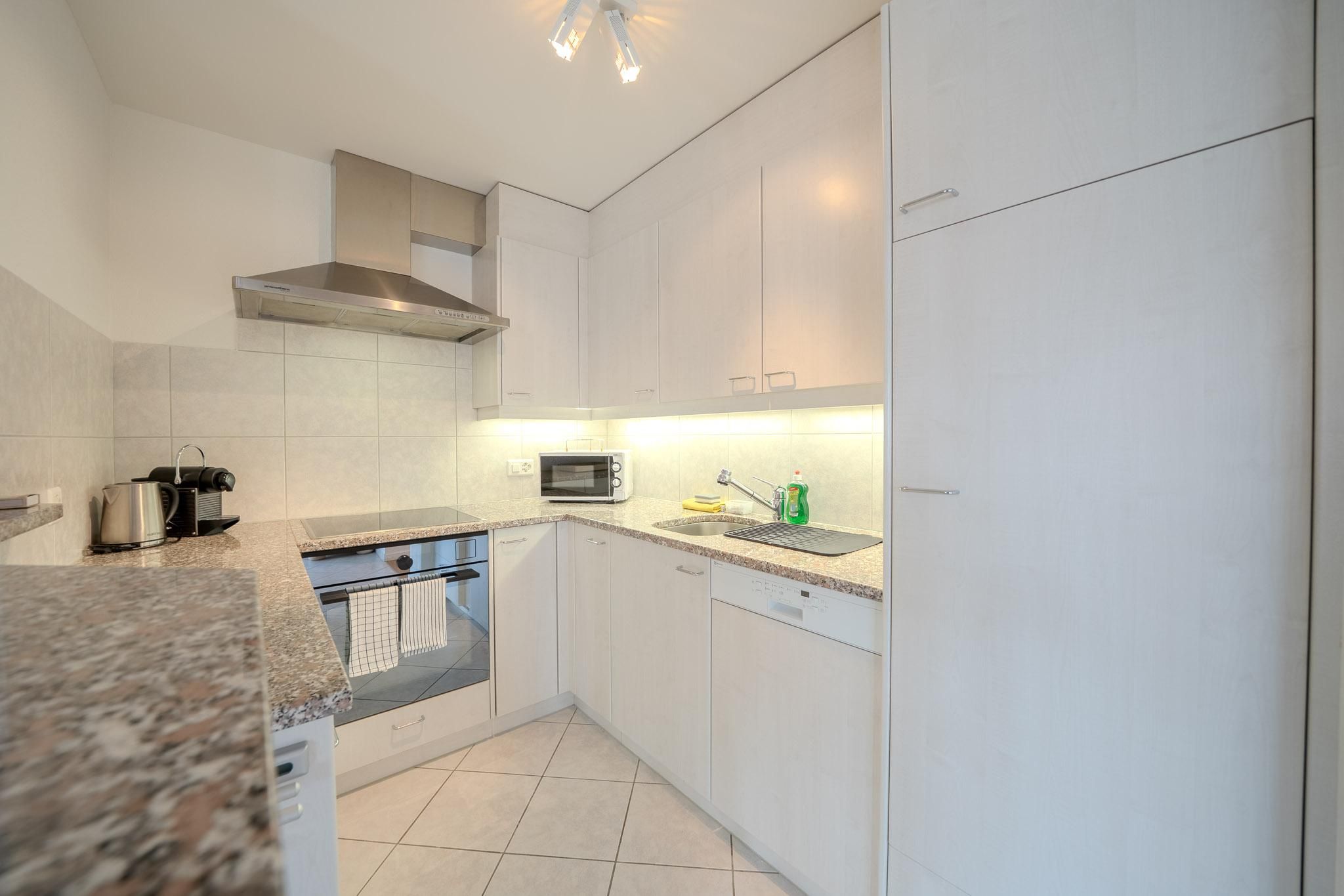 Vollständig ausgestattet: Geschirrspüler, Nespresso-Kaffeemaschine, Mikrowelle, Raclette- und Fondue-Set sowie alle wichtigen Kochutensilien – alles, was Sie zum Kochen brauchen.