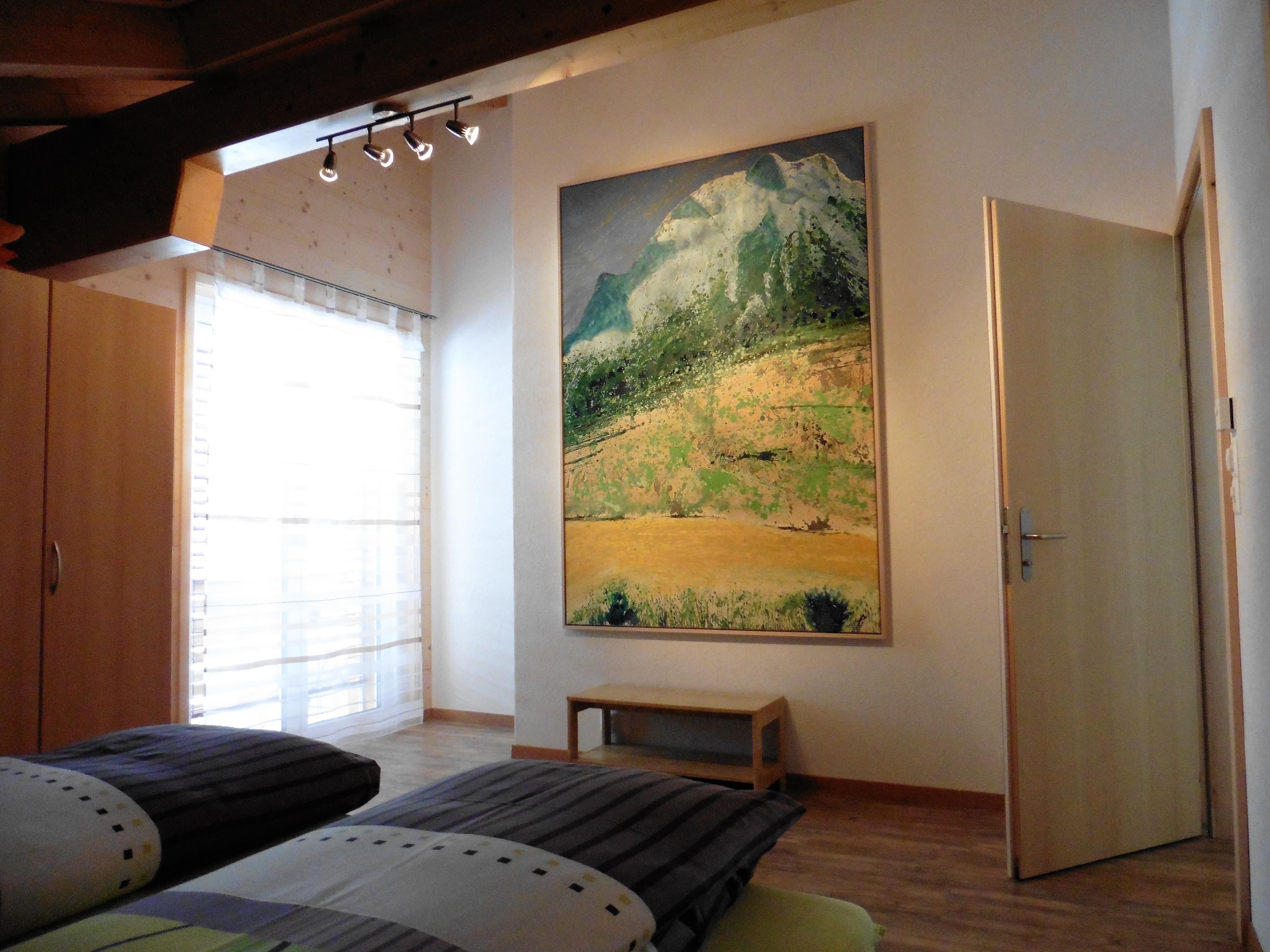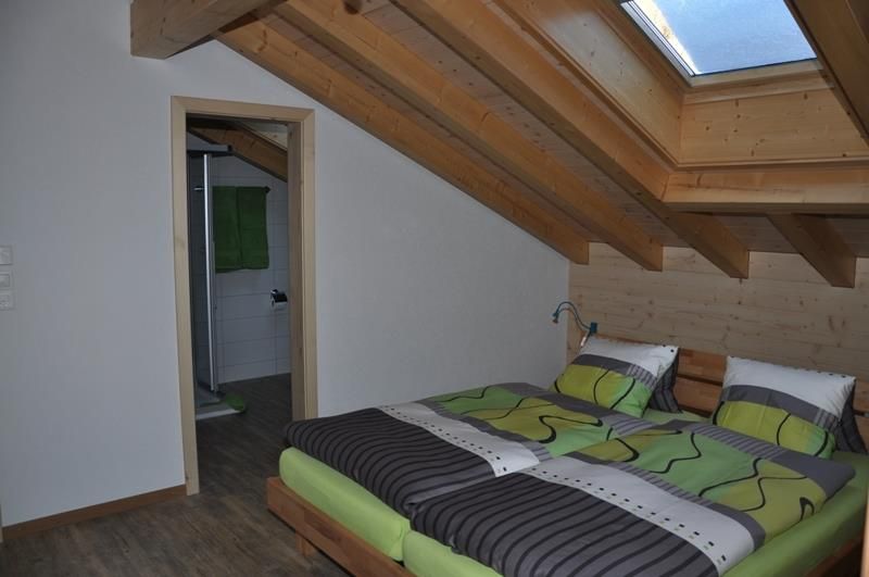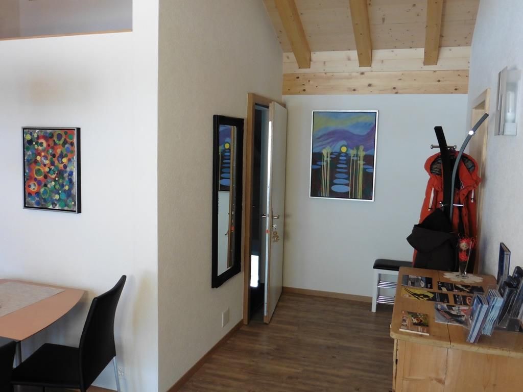 3.5 Zimmerwohnung im Dachgeschoss (2012) mit eingebautem Swiss Chalet. Die grosse Fensterfront im Dachgiebel macht Küche und Wohnzimmer sehr hell. Die offene Dachkonstruktion lieben unsere Gäste. Zimmer 1 Alpenstübli: Urchig, im Alpstyle eingerichtetes und sehr gemütliches Zimmer - unsere kleinen Gäste lieben den friedvollen Schlafraum. Zimmer 2 Bergblick:Fichtenholz und das grosse Gemälde verleihen dem Raum ein harmonisches Ambiente. Jedes Zimmer hat ein Bad mit Dusche/WC . Zentral und ruhig gelegen, nur 300 m zu den Bergbahnen, ÖV und im Sommer zum Schwimmbad. Die Wohnung und die Küche ist sehr gut ausgestattet. Auf 2 Balkons bewundern Sie den prächtigen Sonnenaufgang und das unvergleichliche Abendrot am Grosslohner.