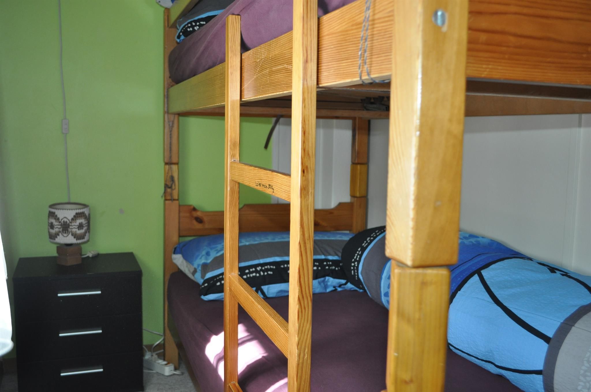 Gemütliche Wohnung, Wohnzimmer mit Sofabett, Cheminée, TV/Radio, 1 Schlafzimmer mit 2 Einzelbetten, 1 Schlafzimmer mit Etagenbett, separate Küche, Dusche/WC.