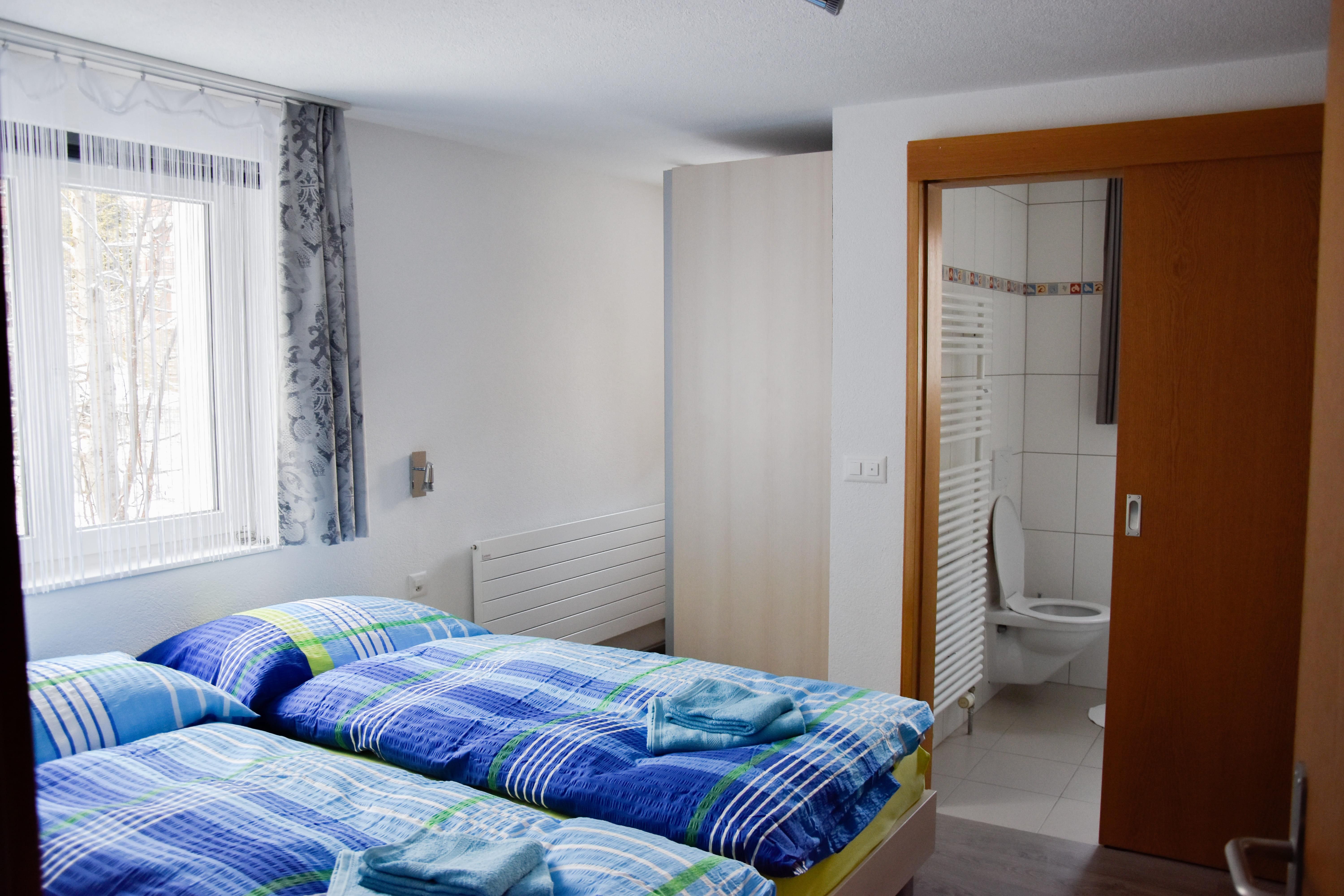 3-Zimmerwohnung neu renoviert Frühling 2015 im Erdgeschoss: 2 Schlafzimmer mit je 2 Betten und je Dusche/WC, Wohnküche, Sitzgruppe, Geschirrspüler, TV, Zentralheizung, kleiner Garten und Skikeller.
