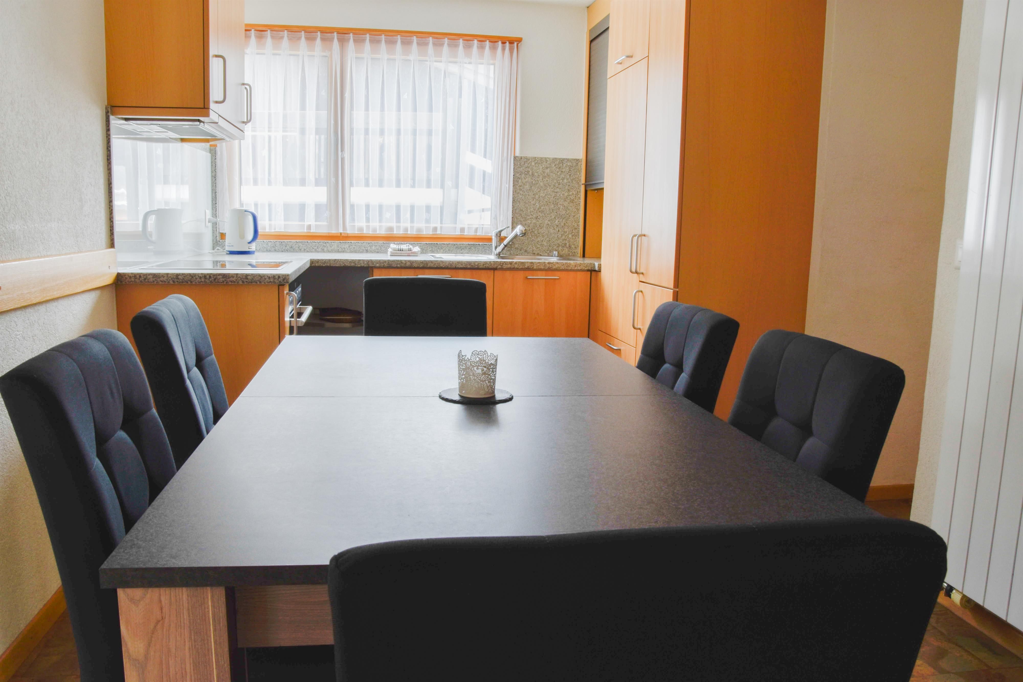 3-Zimmerwohnung im 2. Stock: 1 Doppelzimmer mit Waschbecken, 1 Schlafzimmer mit 3 Betten und Waschbecken, Wohnküche mit Kühlschrank, Geschirrspüler, Backofen und Kaffeemaschine, Wohnzimmer mit Sitzgruppe, TV, Bad/WC, Zentralheizung, Süd-Balkon, Skikeller.