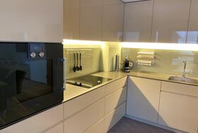 • Voll ausgestattete Küche mit Geschirrspüler, Backofen, Kaffeemaschine, Toaster, Wasserkocher u.v.m.