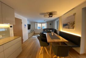 Diese großzügige Ferienwohnung mit einer Gesamtfläche von 110 m² bietet ein helles, einladendes Wohnzimmer, drei separate Schlafzimmer sowie ein modernes Badezimmer mit ebenerdiger Dusche und Haartrockner.