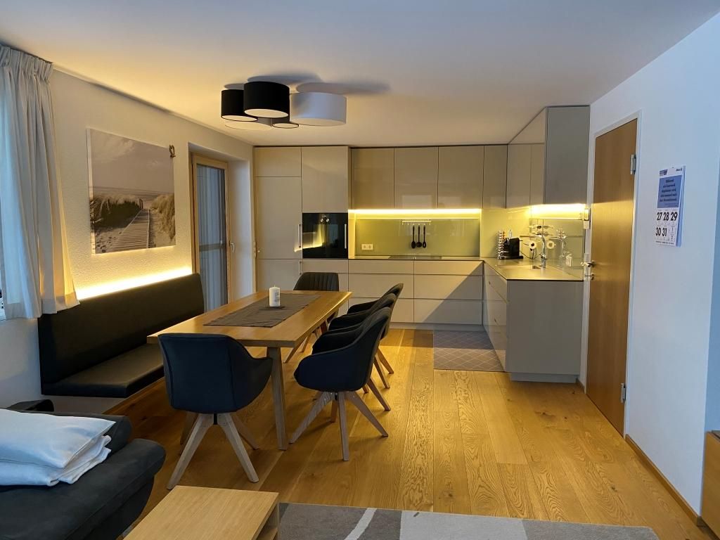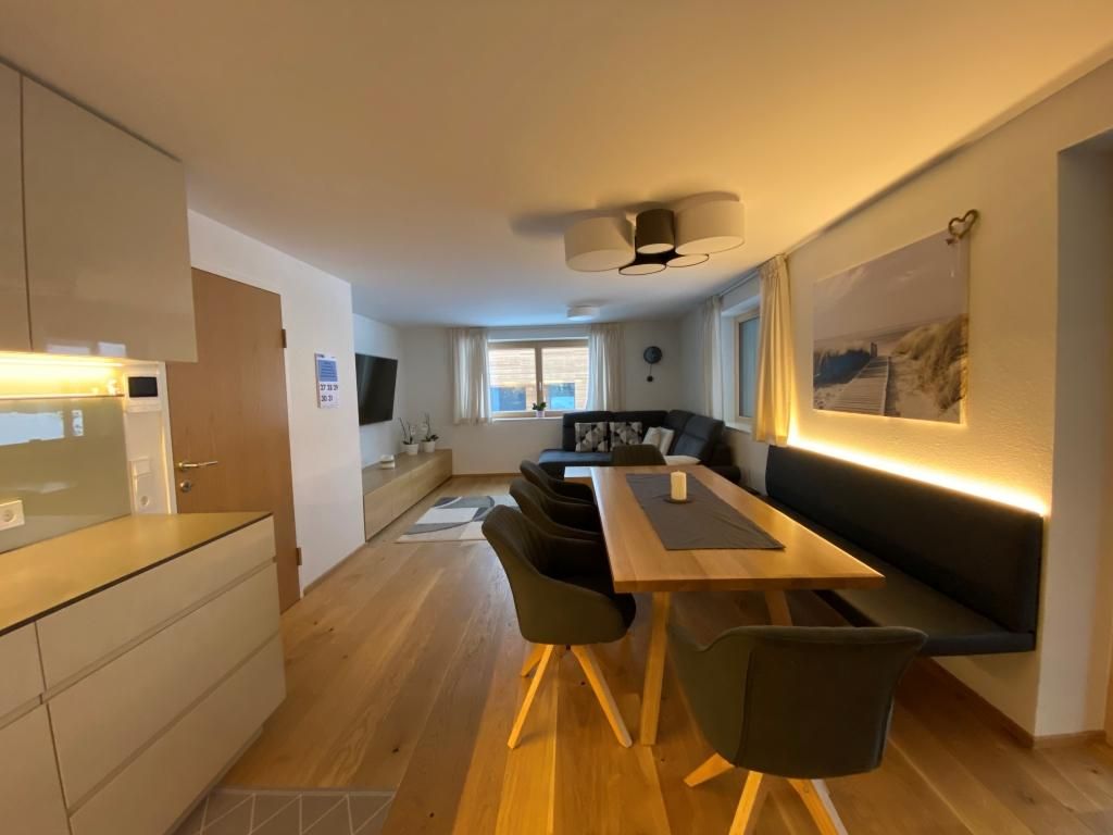 Die voll ausgestattete Küche verfügt über ein Kochfeld, einen Kühlschrank, eine Geschirrspülmaschine und sämtliche Küchenutensilien – ideal für Selbstversorger, die auch im Urlaub nicht auf Komfort verzichten möchten.