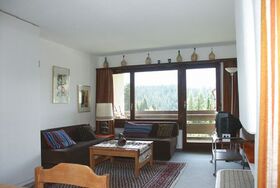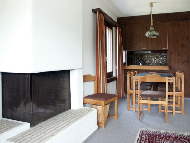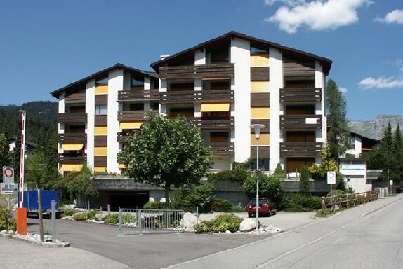 2.5 Zimmerwohnung, 2 Stern Superior, 49 qm, (4 Betten in einem Mehrfamilienhaus, in der Nähe der Bergbahnen. Einfach und zweckmässig eingerichtet. Küche gegen Wohnzimmer mit Einbauschränken abgetrennt, Durchreiche, Elektroherd, Backofen, Dampfabzug, Kühlschrank mit Gefrierfach und Geschirrspüler. Wohnzimmer mit 1 franz. Schrankbett, Esstisch, Stoffpolstergruppe, Klubtisch, Einbauschrank, TV, Internet, Stehlampe und Cheminée. Schlafzimmer mit 1 franz. Schrankbett, 2 Einzelbetten und Einbauschrank. Badezimmer mit Doppellavabo, Bad und Toilette. Balkon nach Süden. Hallenbad mit direktem Zugang durch Einstellhalle. Sauna im Hause, kleine Gebühr (Münzautomat).