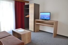 Das Comfort-Appartement für 2- 4 Personen verfügt über eine Küche, Wohnzimmer mit Ausziehcouch, Schlafzimmer, Dusche, getrenntes WC, Vorraum, Balkon, Flat-TV, kostenloses WLAN. Die Küche ist ausgestattet mit Herd, Kaffeemaschine, Wasserkocher, Kühlschrank.