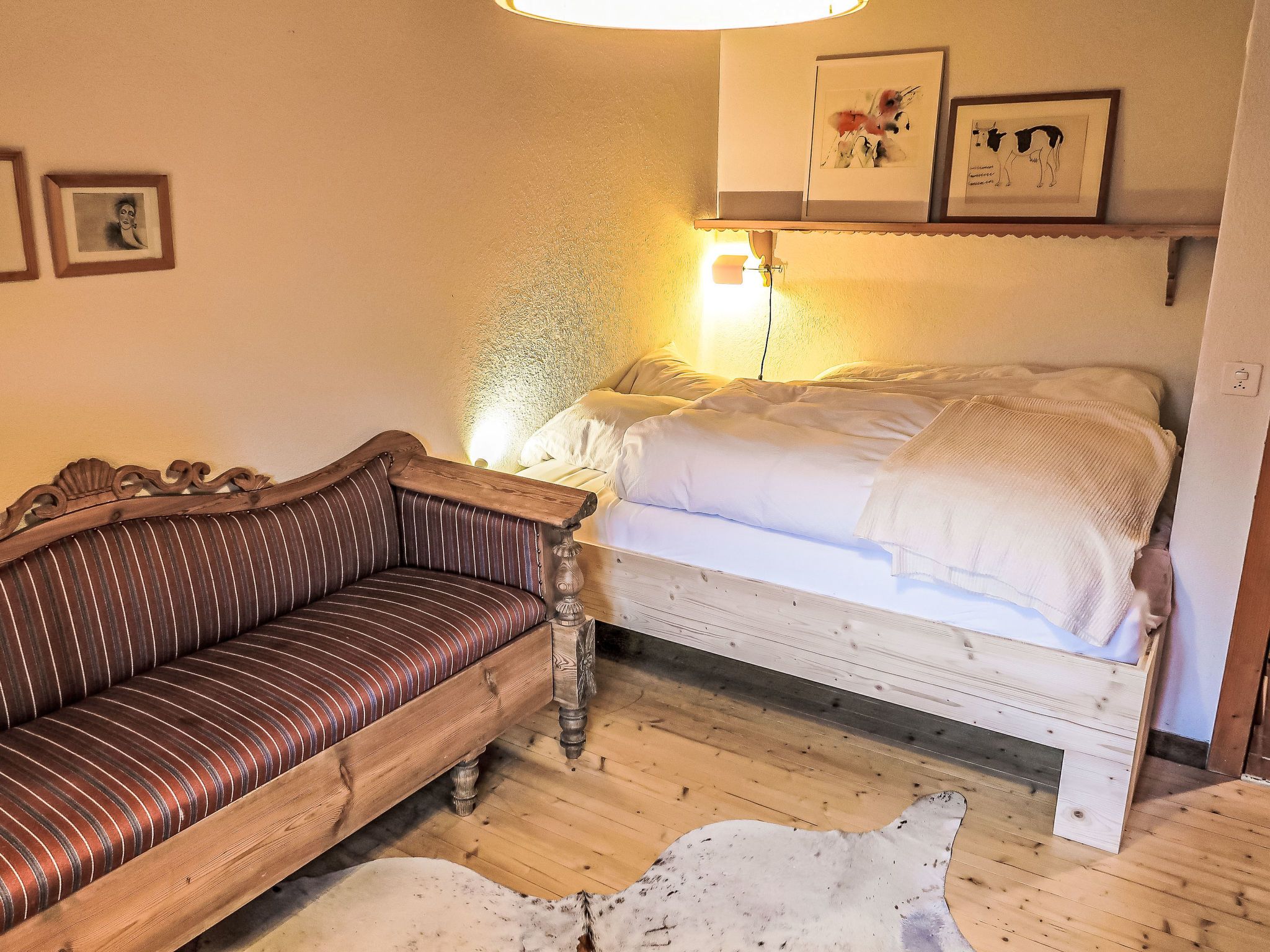 4-Zimmer-Wohnung 80 m2, im Erdgeschoss. Rustikal und gemütlich eingerichtet: Wohn-/Esszimmer. Ausgang zum Gartensitzplatz. 3 Doppelzimmer. Offene Küche (4 Kochplatten, Backofen, Geschirrspüler, Toaster, Wasserkocher, Racletteofen, Fondue Set (Käse)). Dusche, sep. WC. E-Heizung, Boiler (300 Liter). Gartensitzplatz 40 m2. Terrassenmöbel, Abstellkammer. Schöne Sicht auf die Berge, das Tal und die Landschaft. Parkplatz, Garage Nr. 12 in 50 m. Bitte beachten: Nichtraucher-Unterkunft.