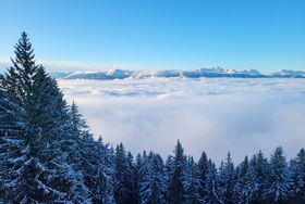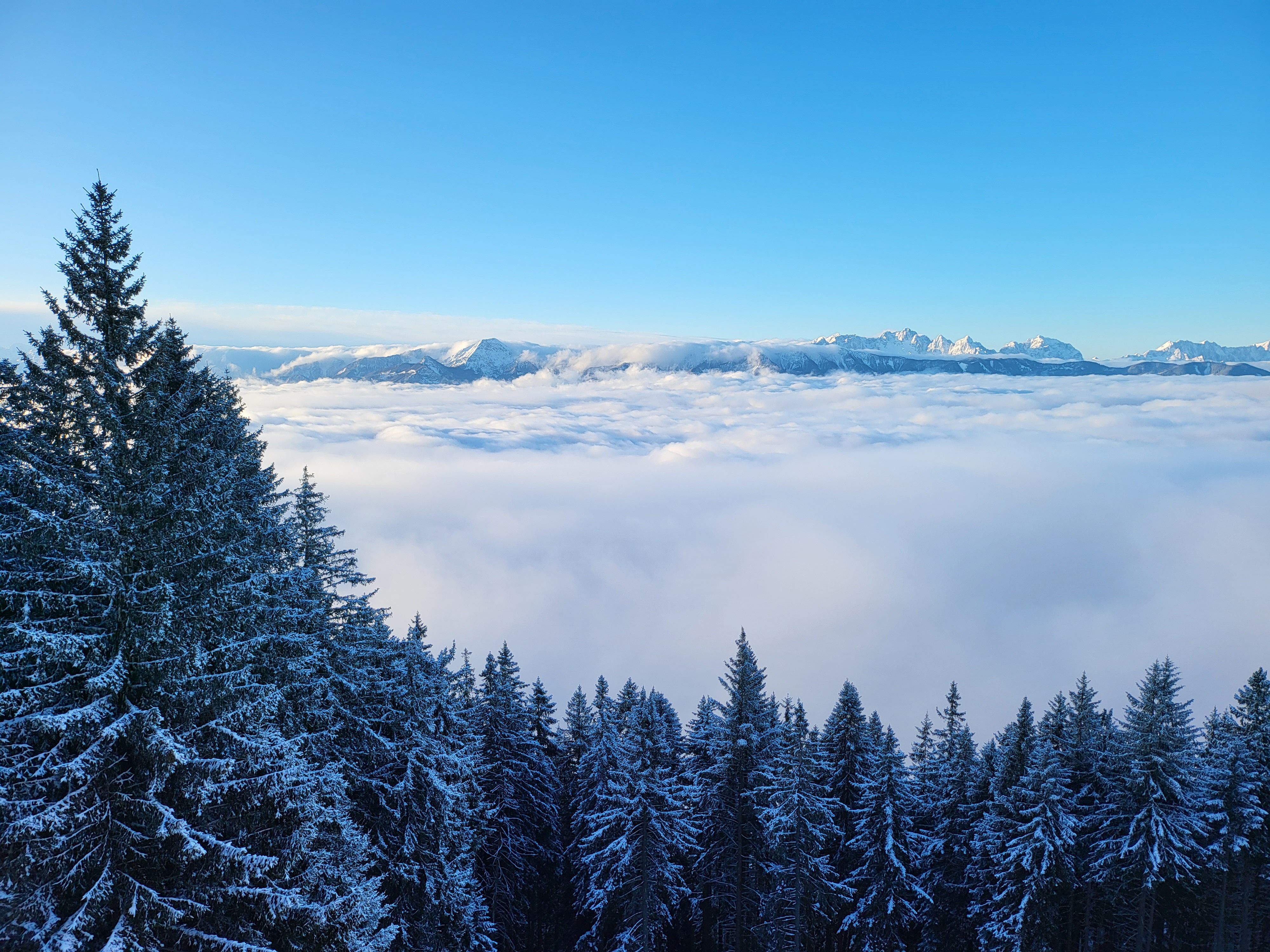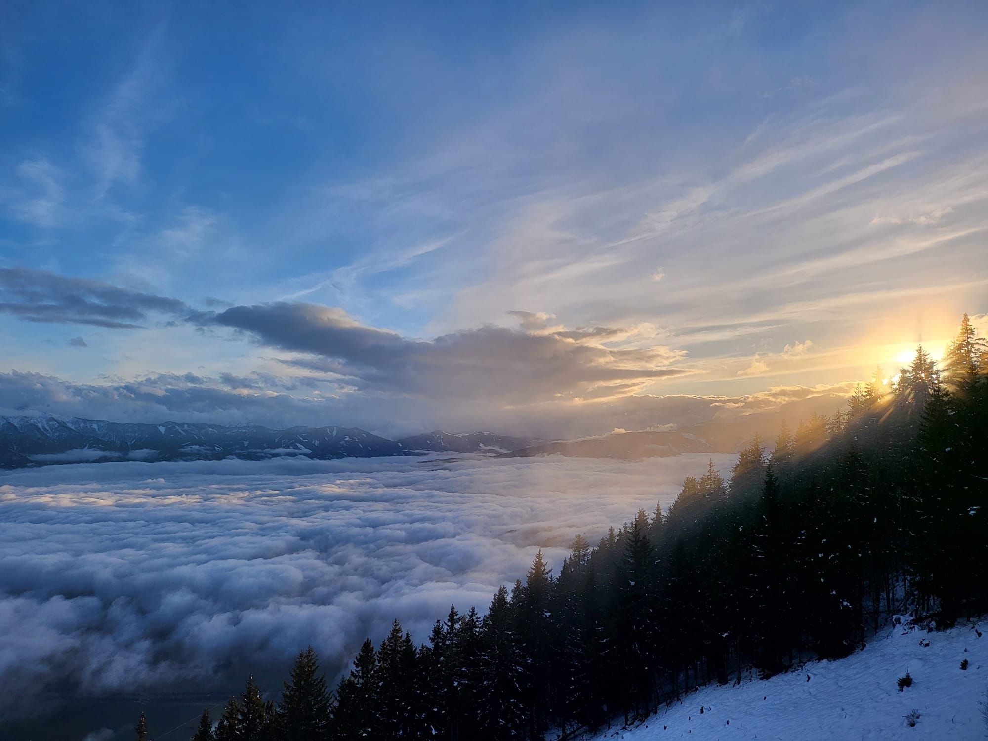 Freuen Sie sich auf komfortable Erholung und atemberaubende Ausblicke auf die verschneite Alpenlandschaft. Wir freuen uns darauf, Sie bei uns willkommen zu heißen!