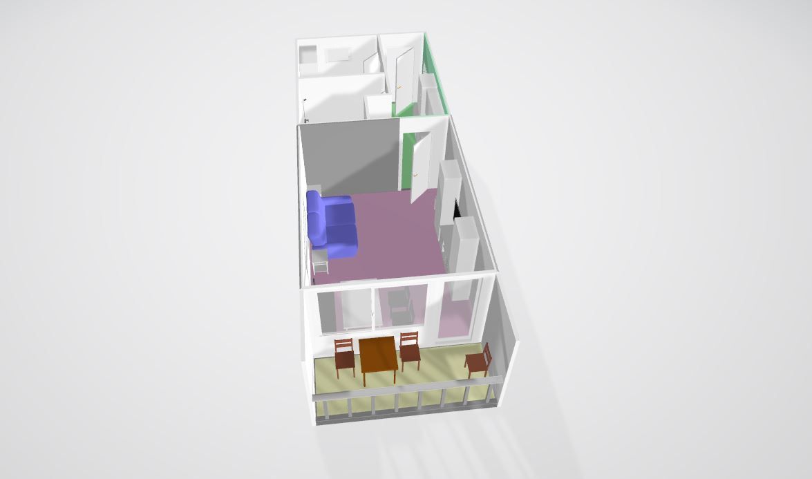 - Wohn-/ Esszimmer (Doppelschlafsofa 160x200, Esstisch, Fernsehen, Schrank)