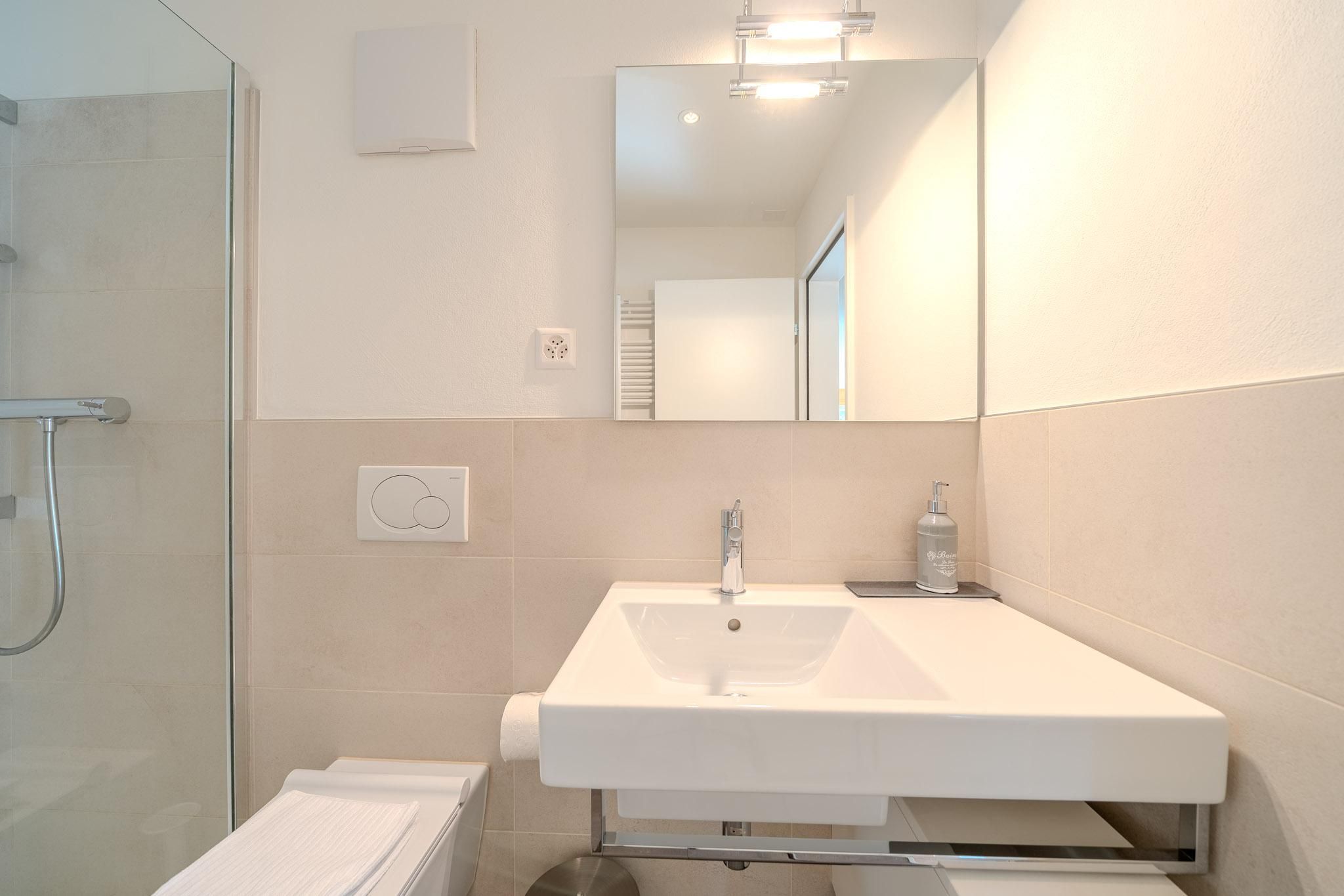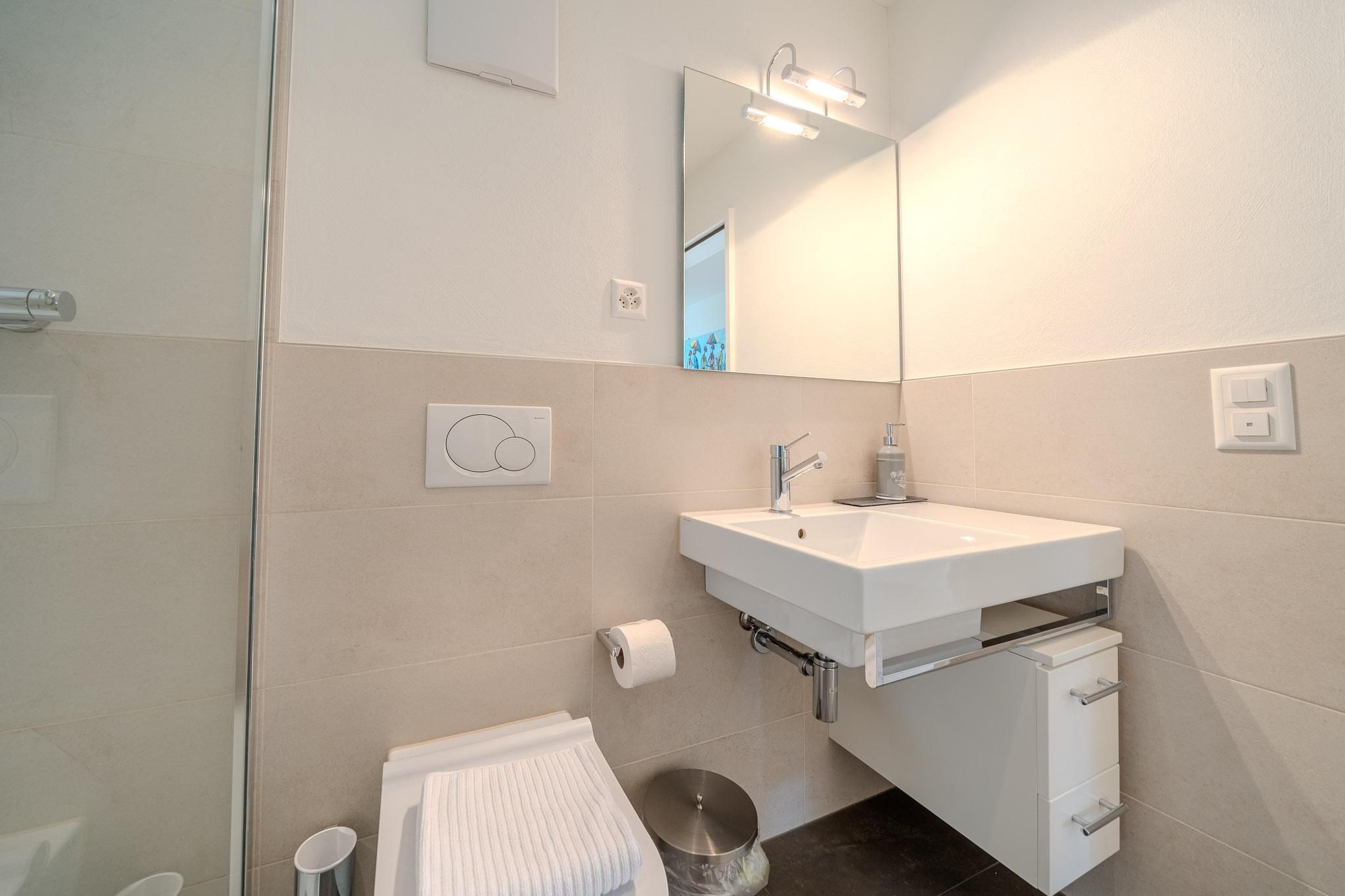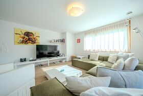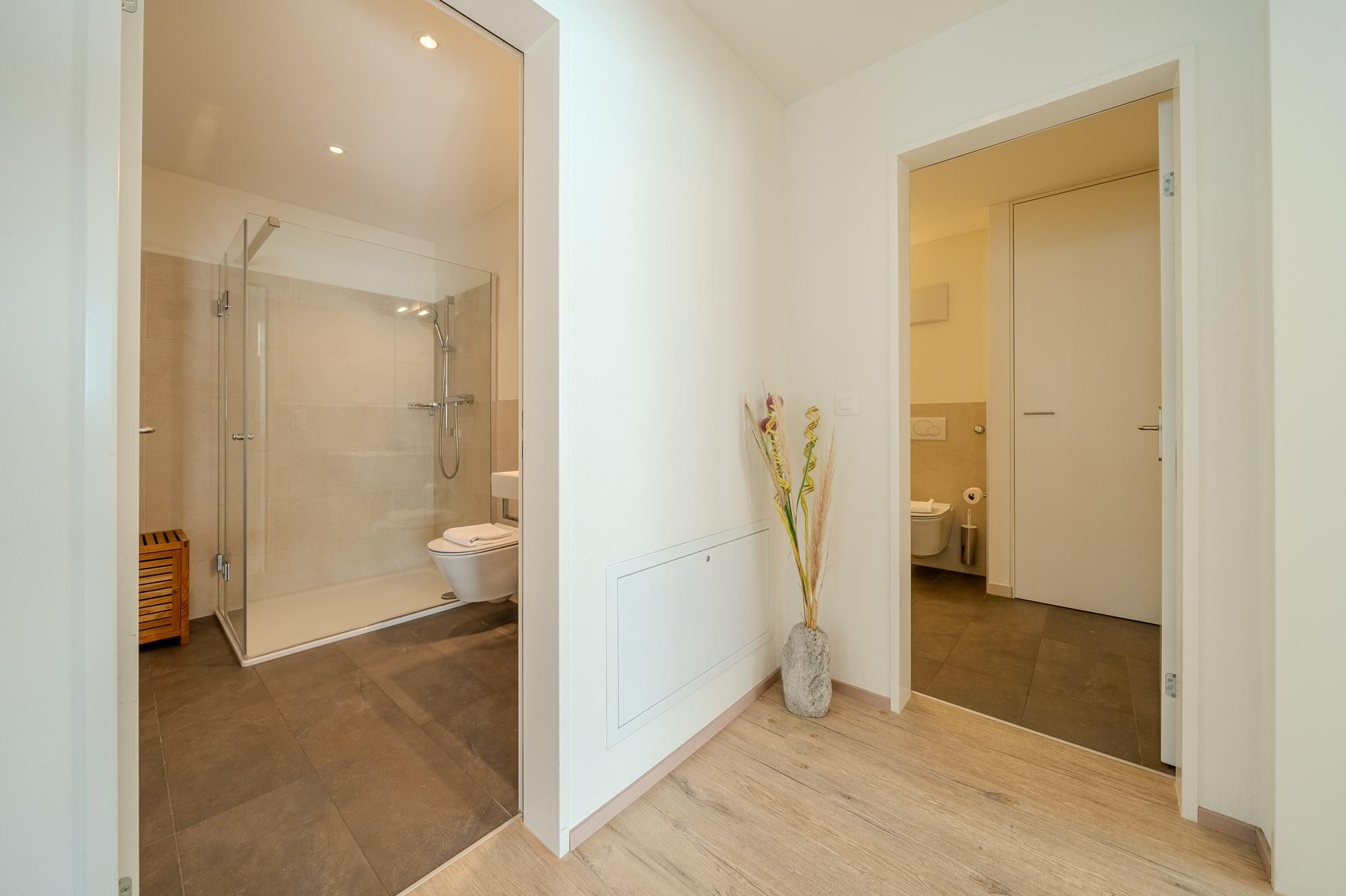 Diese stilvolle Wohnung bietet ein geräumiges Wohnzimmer mit offener Küche und Zugang zu einem grosszügigen Balkon mit schöner Aussicht. Sie wurde mit viel Liebe zum Detail und hochwertigen Materialien eingerichtet, damit Sie sich vom ersten Moment an wie zu Hause fühlen. Die Gäste können zudem den überdachten Aussenparkplatz direkt beim Gebäude nutzen.