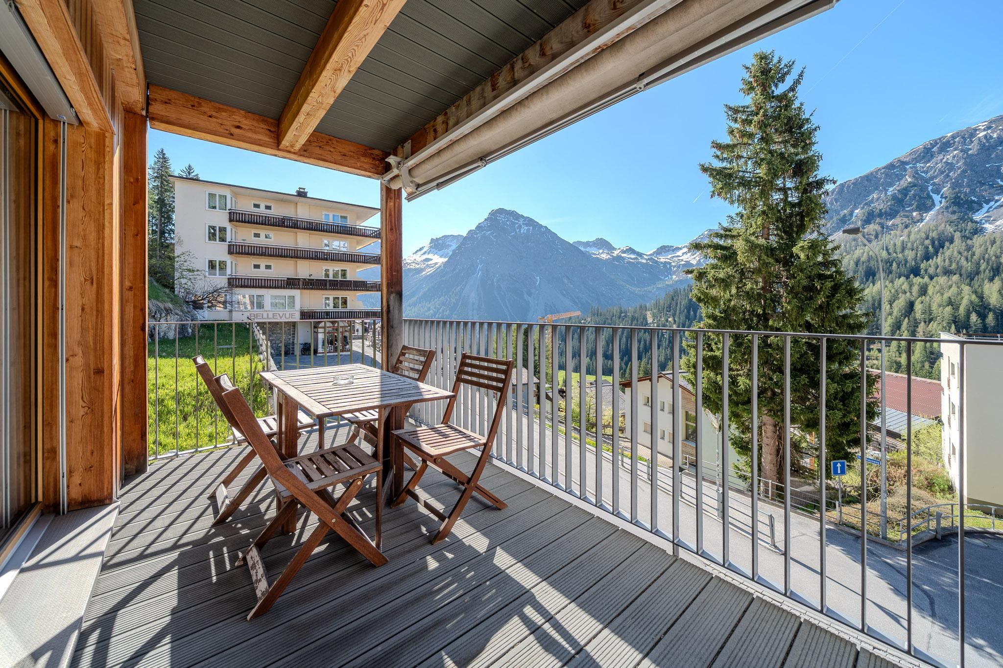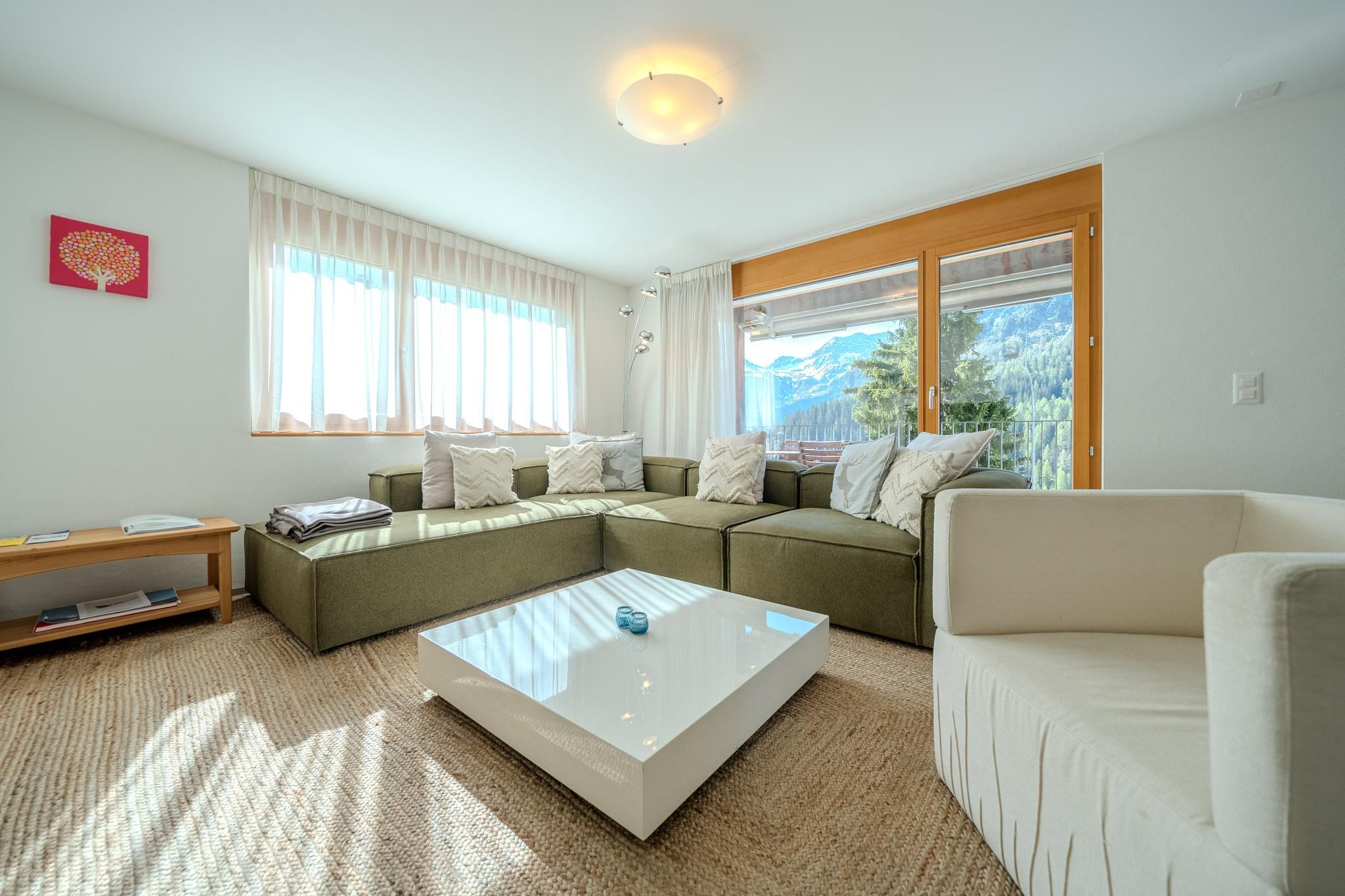 Willkommen in unserer modernen Wohnung mit zwei Schlafzimmern im Sunnaschy – ideal gelegen an der Poststrasse, in der Nähe von Brüggli und der Skischule, mit einem grossen Balkon und herrlichem Blick auf die Berge.