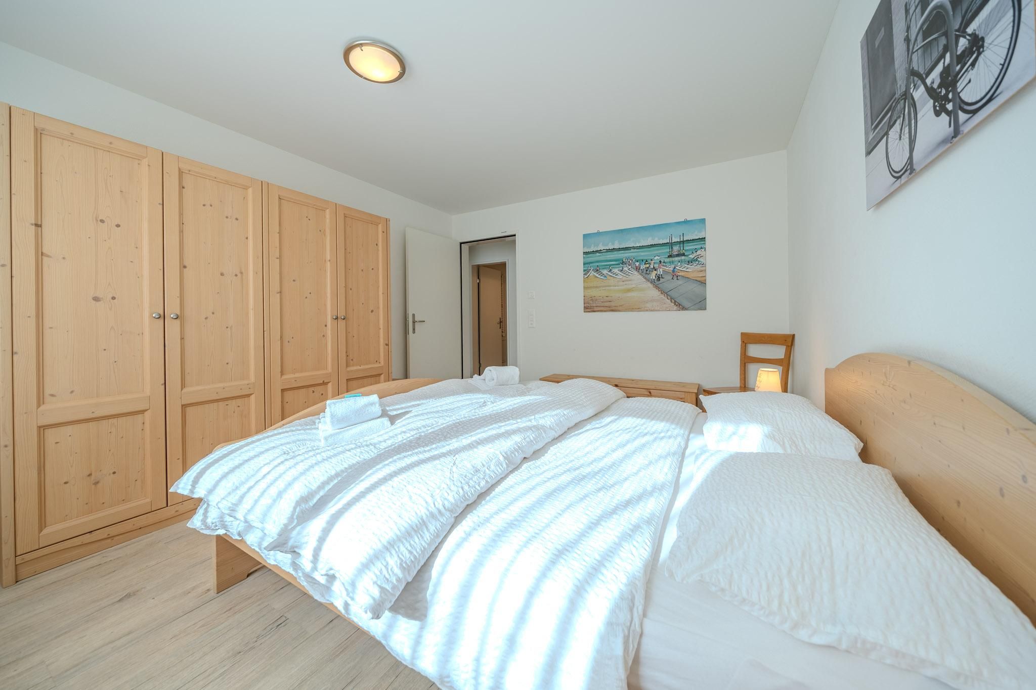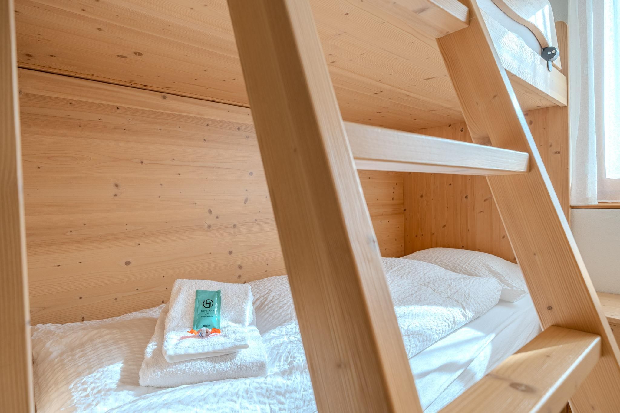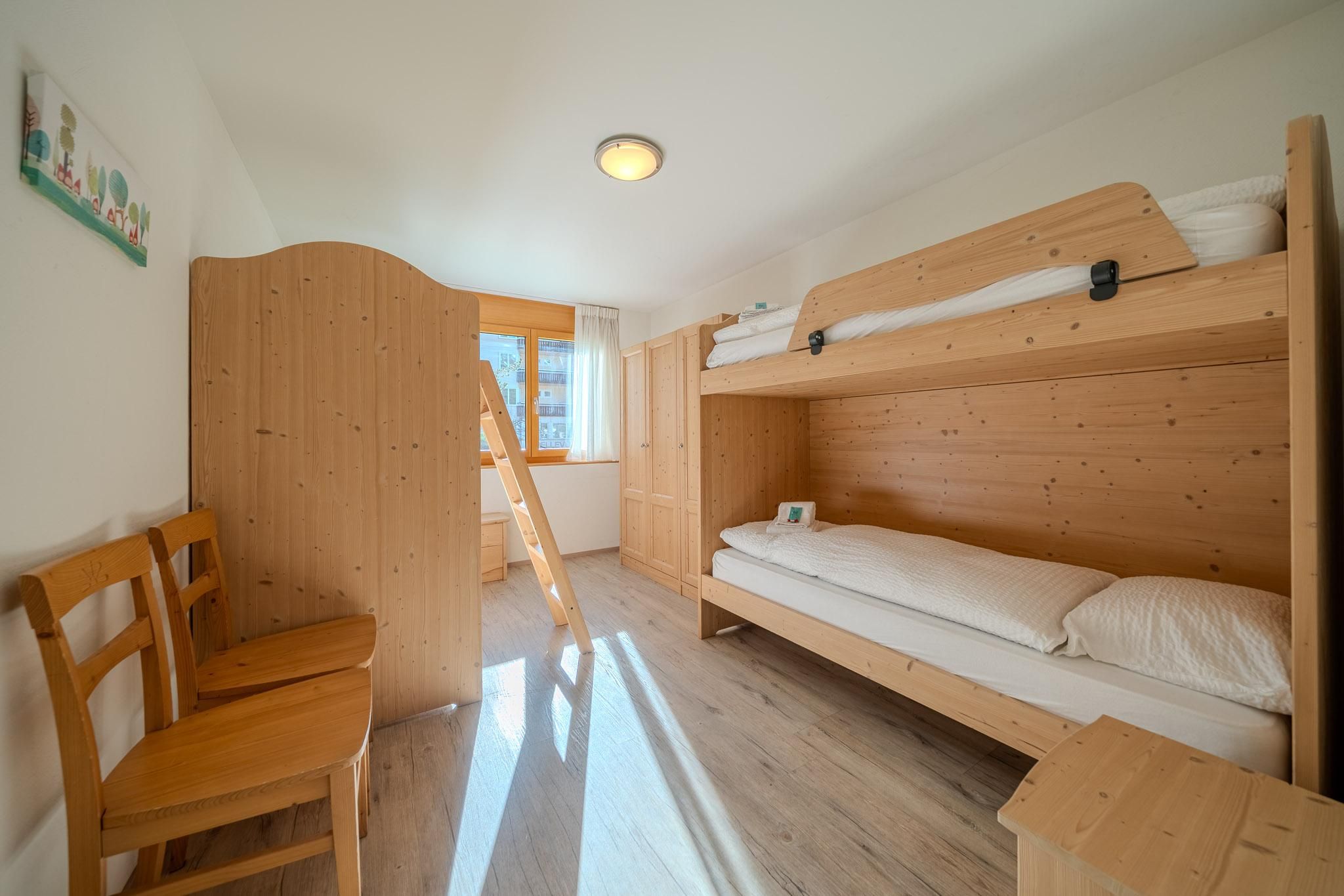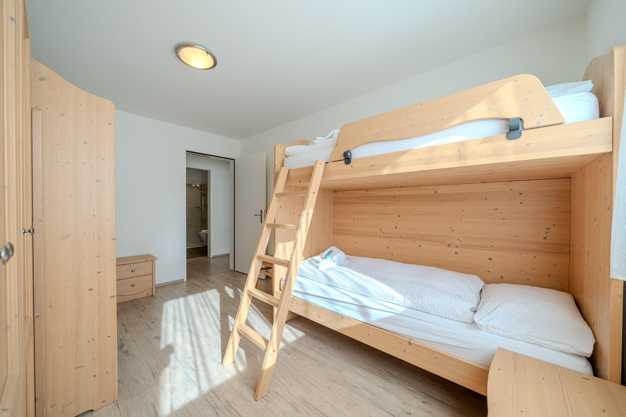 Mit zwei Etagenbetten (4 Schlafplätze insgesamt) und Kleiderschrank – ideal für Familien mit Kindern.