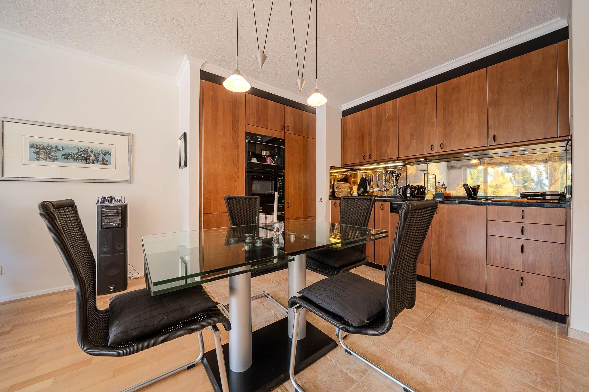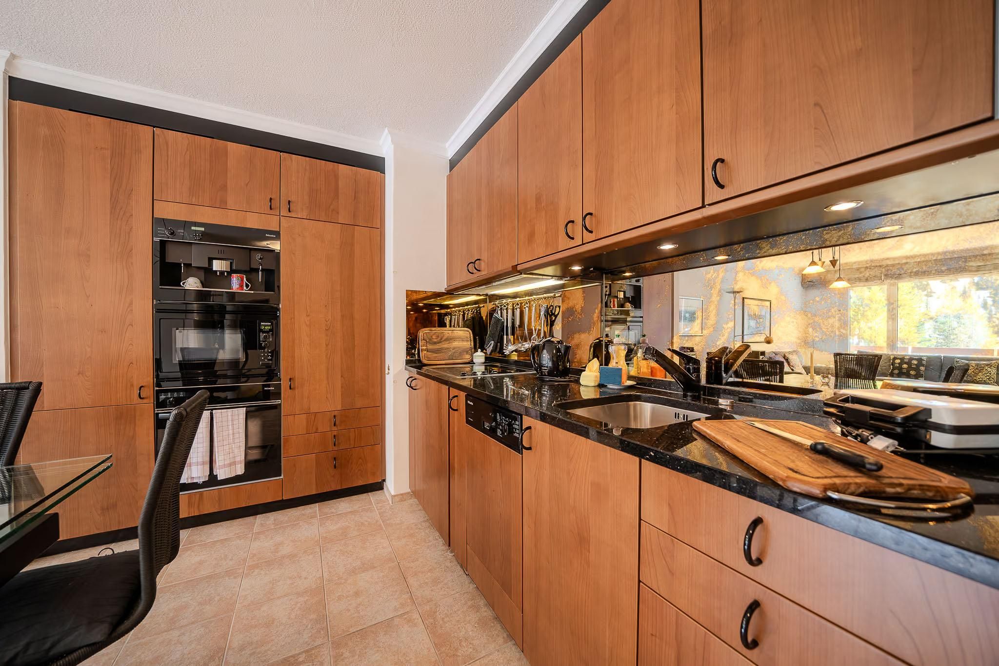 Voll ausgestattet mit allen notwendigen Utensilien, Nespresso-Kaffeemaschine, Geschirrspüler, Mikrowelle sowie Raclette- und Fondueset.