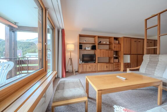 In einem ruhigen Wohnquartier nahe der Maranerstrasse, gegenüber der Bushaltestelle und direkt an der Skipiste vom Prätschli. Nur wenige Gehminuten vom Bahnhof und dem Obersee entfernt.