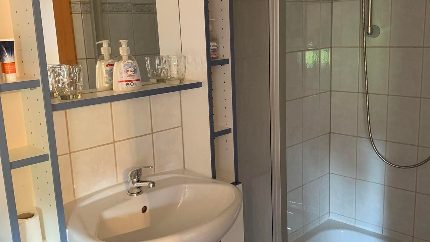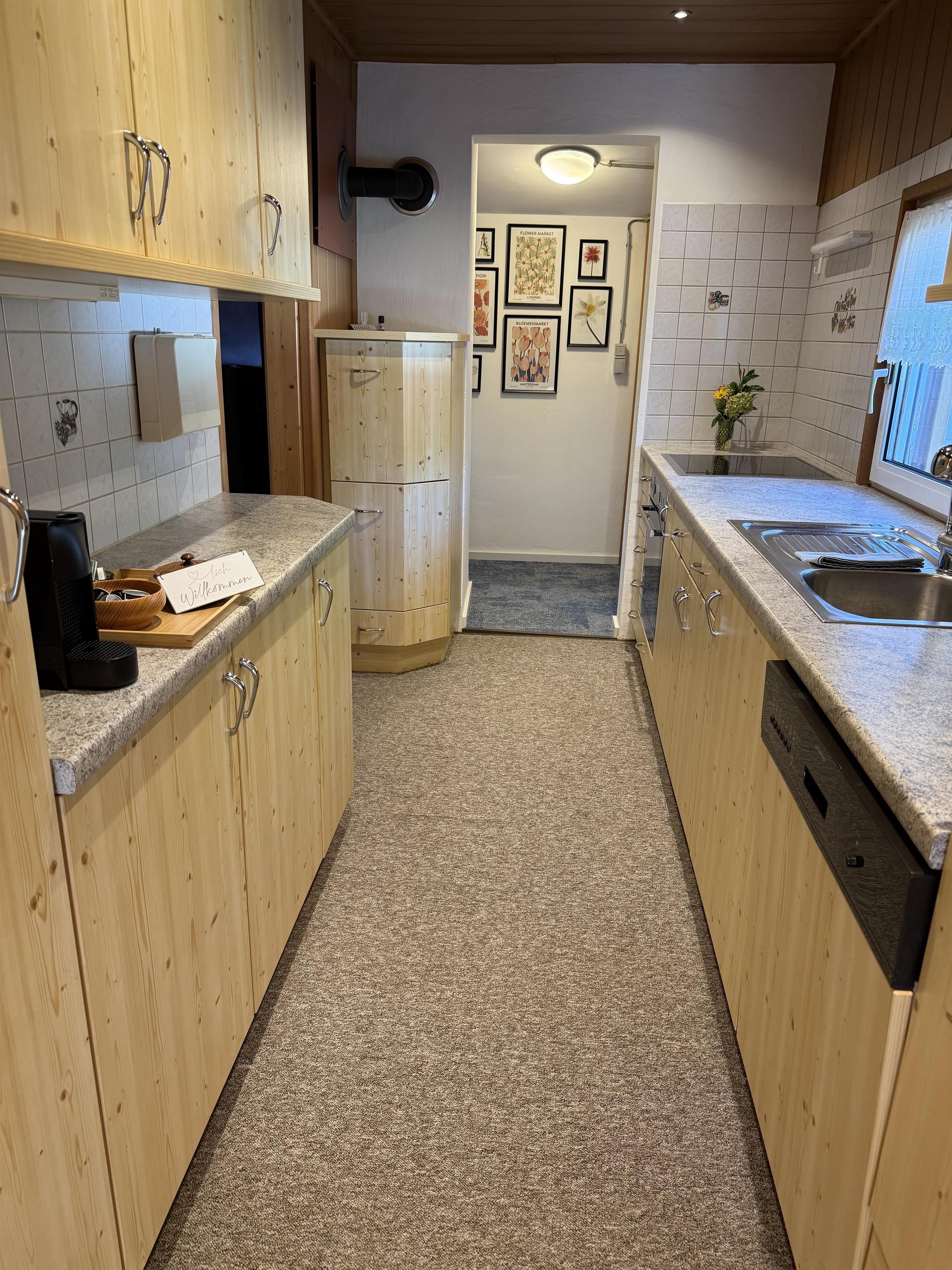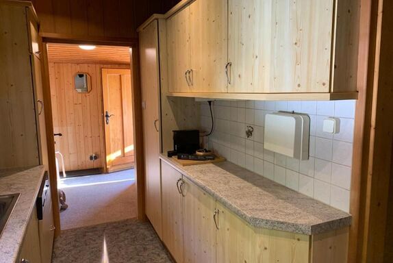 Das Ferienhaus ist aufgeteilt in Vorraum, Küche, Wohn-Esszimmer, Bad mit Dusche und WC, Schlafzimmer, Schrankraum, Terrasse, Garten, Garage und Parkplatz.