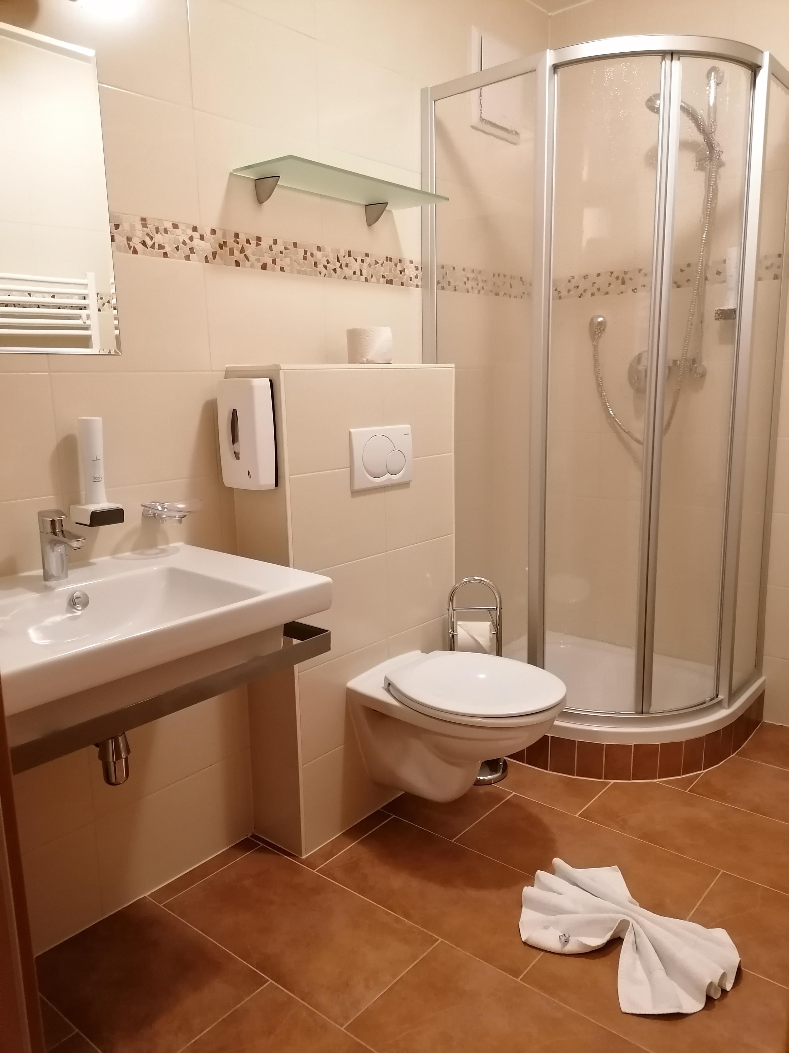 Komfortables Zimmer ca. 32 m² groß, ausgestattet mit Dusche/WC, Fön, Kosmetiktücher, Seife/Duschbad, Handtücher, Flat-TV, Trinkwasserleitung, Mineralwasserflasche, fertig bezogene Betten, Schlafcouch, Schreibtisch, kostenloses W-Lan (Wifi) und Balkon.