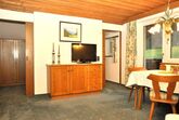 • Wohnzimmer mit TV, Couch und Esstisch