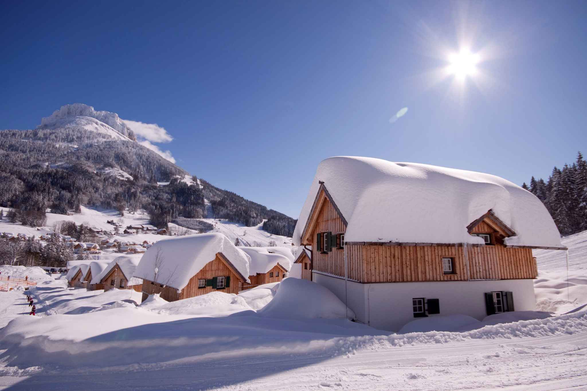 Das Ferienhaus befindet sich in einer Ferienanlage (Landeskategorie 4 Sterne, insgesamt 46 Unterkünfte) und ist umgeben von einem offenen Gartengrundstück mit Wiese, Bäumen und Blumen. Ein Backofen kann gemietet werden, bitte bei Reservierung mitbestellen (klein für Gebäck Euro 5,-/Aufenthalt, groß für Speisen und Pizza Euro 15,-/Aufenthalt). Die Anlage verfügt über Rezeption, Internet (WLAN), 1 Restaurant, Waschsalon, Terrasse, Kinderspielplatz und Sonnenliege. Sauna und Fahrradverleih. Weitere Ausstattung: Babypaket mit Hochstuhl, Gitterbett, Badewanne, Babyphone, Wickelauflage, Stiegengitter gegen Gebühr.Kreditkarten: Visa, MasterCard.Lage: Altaussee. Das einzeln stehende Ferienhaus ist modern und im typischen Landesstil eingerichtet. Das Grundstück befindet sich in einer Ferienanlage am Ortsrand. Auch wegen der ruhigen und sonnigen Lage ist das Domizil beliebt. Die Zufahrt zum Grundstück erfolgt über eine asphaltierte Nebenstraße. Öffentliche Parkplätze befinden sich auf der Straße vor dem Haus. Kostenloser, allgemeiner Parkplatz. Die nächste Einkaufsmöglichkeit ist 3 km entfernt, Restaurant 200 m und Ortszentrum 3 km. Hallenbad in Bad Aussee 4 km. In direkter Umgebung urige Gasthöfe. Bad Ischl 25 km, Salzburg 80 km.Im Sommer: Altausseer See in Altaussee 3,5 km. Für die Nautiker unter Ihnen gibt es in Bad Aussee einen Bootsverleih, 3,5 km. Petrijünger können in Bad Aussee, 3,5 km die Angel auswerfen. Weitere Sport- und Freizeitangebote warten auf Sie in der Umgebung. Zum Beispiel Bad Aussee: Reiten 13 km, Tennis 4 km und Golf 9 km. Linienschiffahrt, Panoramastraße auf den Loser, Salzbergwerk Altaussee, Hagan-Klettersteig, Hochseilklettergarten, Wanderweg um den Altausseer See.Im Winter: Das nächstgelegene Skigebiet ist 150 m entfernt und befindet sich in Altaussee. Weiterhin gibt es eine Loipe in Moosham, 2 km und eine Eislaufbahn in Moosham, 4 km. Eine Rodelbahn erwartet Sie in Ebensee, 13 km. Skiverleih, Skischule jeweils 20 m in Altaussee. Die Anlage liegt direkt am Fuße des Skigebietes Loser, nur einige Gehschritte vom Lift entfernt. Loser: 800-1800 m, 3 Schlepplifte, 4 Sessellifte, 29 Pistenkilometer (16 km blau, 11 km rot, 2 km schwarz). In direkter Umgebung: Langlaufen und Winterwandern.