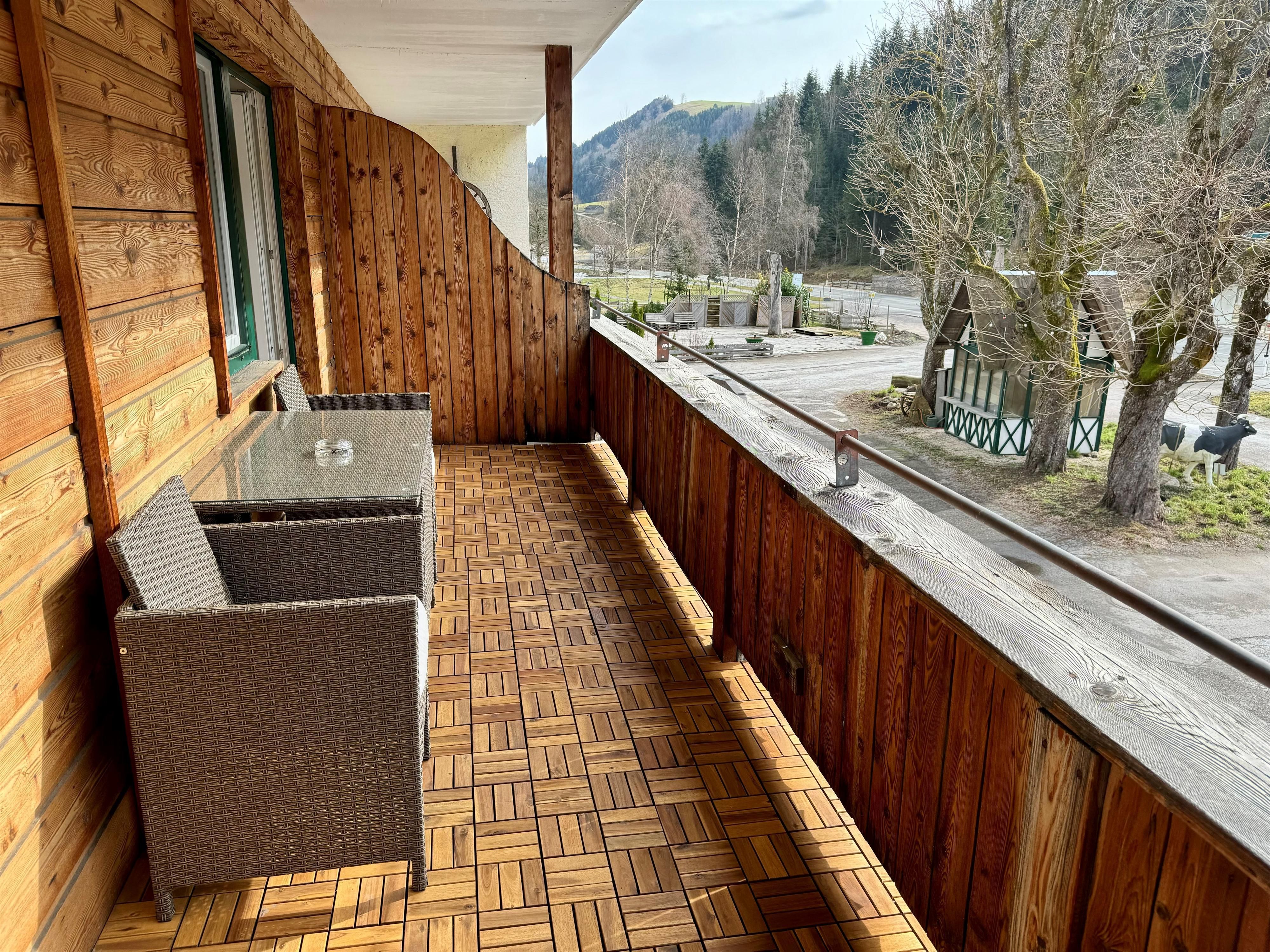 Vom Schlafzimmer und vom Wohnbereich aus erreicht ihr euren eigenen, überdachten Balkon, mit einmaligem Panoramablick auf die Tiroler Alpen.