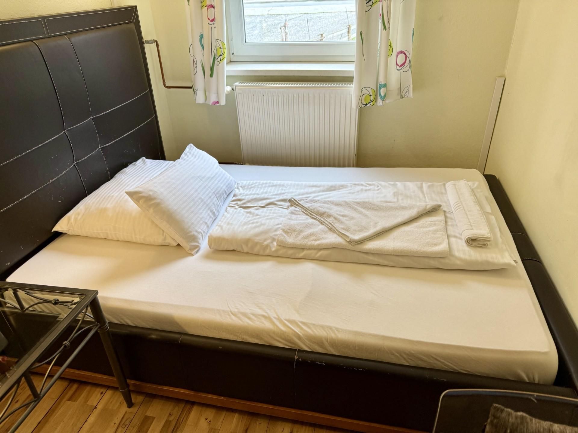 Das gemütliche Schlafzimmer verfügt über ein komfortables Einzelbett und bietet Staumöglichkeiten für Ihr Reisegepäck.